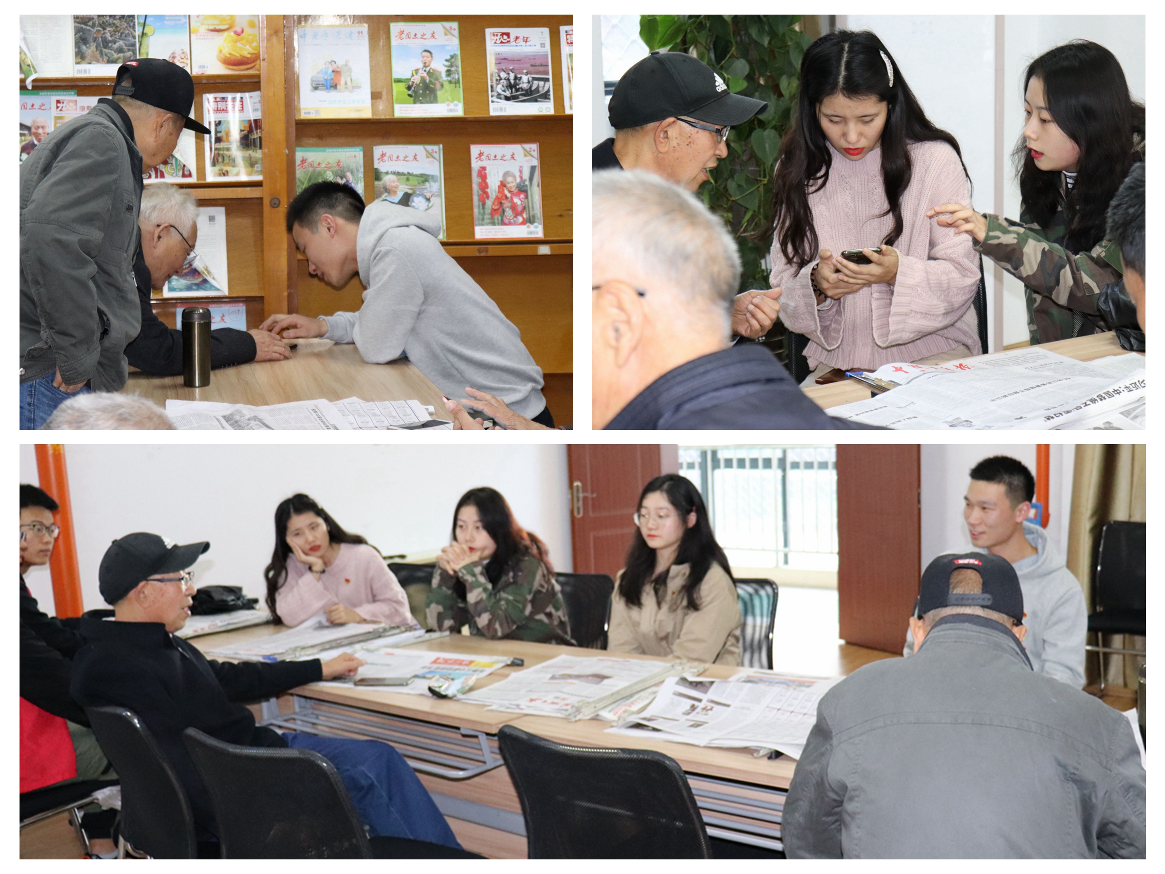 岁月走来的是昨天和今天,生命唱响的是明天的歌,退休老师们为了教育事业把生命中所有的能量化为一缕缕爱的阳光,照亮了学生的心间,照亮了他们的未来。离退休活动中心是学校为离退休的教职工提供的一个学习交流的活动场所。现代社会发展迅速,互联网科技媒体更新换代速度快,互联网拥有巨大的资源、方便快捷的使用方式和良好的交互性能,“活到老,学到老”,退休教师们也希望通过互联网了解信息,方便生活。支部成员志愿为老教师们解决生活上遇到的手机操作难题,手把手教退休教师通过网络共享、获取和使用知识,熟悉使用多功能的手机软件,让他们体会最新的网络教育资源带来的便利。在志愿服务同时,支部学生党员和退休教师促膝谈心,谈理想谈人生,虚心求教,扩大了知识面,陶冶了情操。