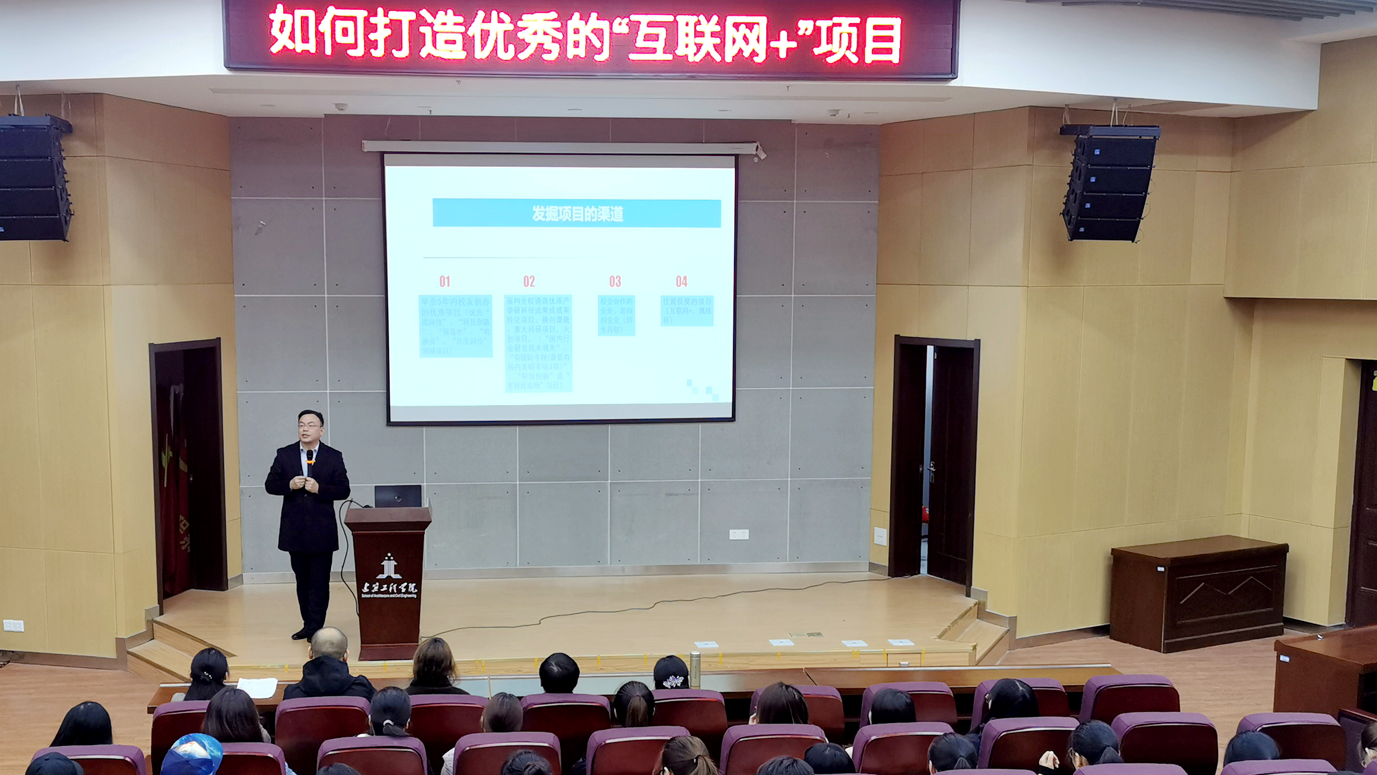 报告中,刘沛平针对“如何打造优秀的‘互联网+’项目”,从产品服务、市场容量、技术门槛、商业模式、创业团队、落地实施等维度进行介绍,并结合历届比赛的金奖项目进行了深入剖析。他指出“互联网+”项目要遵从 “顶天立地”的原则,项目可以是高精尖的技术项目,也可以是脚踏实地的实干项目。刘沛平还分享了自己对大学生创新创业教育的深刻理解:大学生创新创业没有失败,参与即是成功和收获,在校大学生要秉承求收获、求成长的参赛心态,切忌功利化、切忌成败论。
