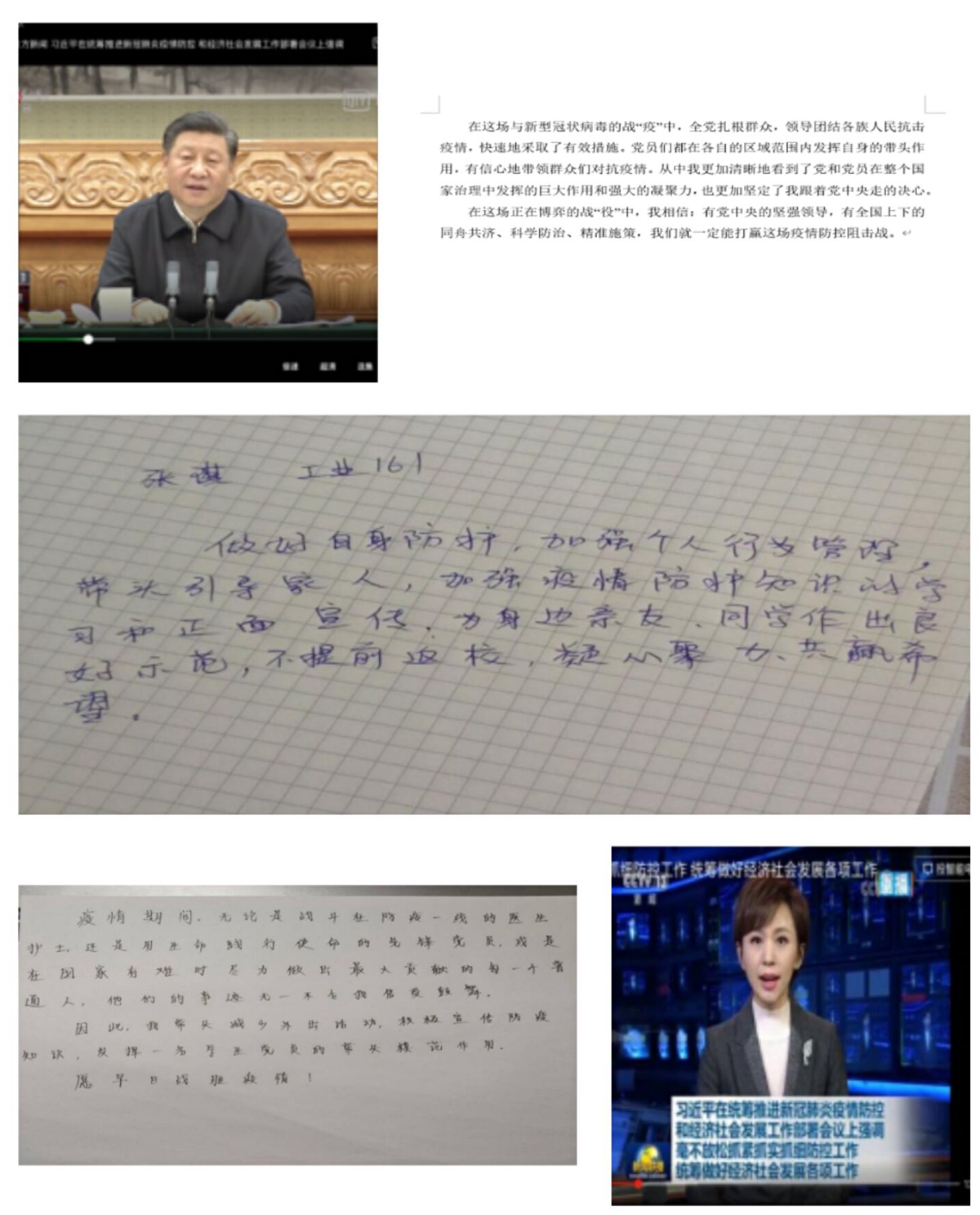 为更好的促进支部成员在党日活动上充分学习讨论,赵子旋同志在会前认真协调组织,带头分利用网络平台。组织党员学习习近平总书记关于抗击疫情的重要指示精神和中央、省委各项通知要求,以及学校的各项工作部署,本次党日活动主要分为四个步骤进行:(一)收看习总书记在统筹推进新冠肺炎疫情防控和经济社会发展工作部署会议上的讲话报道视频;(二)学习《用生命践行使命——追记合肥市包河区委常委、组织部长施咏康》事迹报道;(三)通报本学院、本支部的党员在疫情防控工作中发挥作用的情况;(四)各党员同志总结交流学习。在会议中赵子旋同志表示:“我们要坚持以习近平新时代中国特色社会主义思想为指导,勇于发挥模范带头作用,勇于奉献,坚决做好疫情防控工作,带头表率,带头普及防治知识,带头减少传播机会,带头做好舆论引导,认真及时做好疫情防控工作,带头服从组织的各项安排”;纪婷同志发言:“我相信,只要坚持党中央的领导,坚定信心,众志成城,就一定能度过这次难关”。随后,支部同志都一一发言,讲述在抗疫一线优秀党员的先进事迹,赞扬了在生活中勇于奉献的白衣天使,倡导支部党员学习抗疫精神品质,团结一心,打赢这场防疫阻击战。