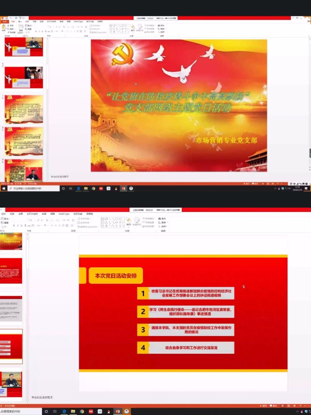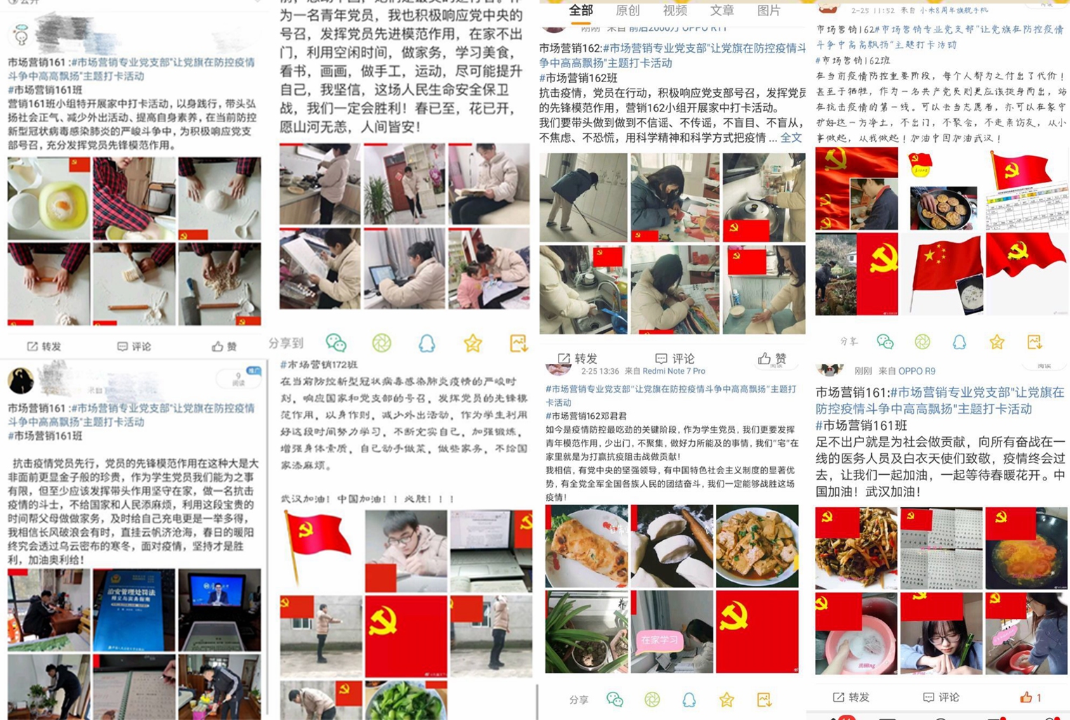 新型冠状病毒感染的肺炎疫情牵动着全国人民的心。当前,疫情防控工作到了最关键阶段,形势依然严峻复杂。随着抗“疫”战线的延伸,开学时间被迫延迟。面对一场没有硝烟的战“疫”,市场营销专业学生党支部的党员同志们开展“抗击疫情,我们在行动,让党旗在防控疫情斗争终高高飘扬”的主题党日活动。