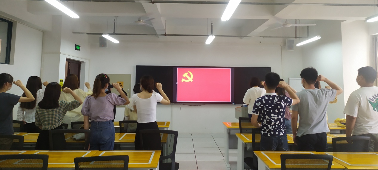 活动第二部分,物流管理专业学生支部书记带领全体毕业班党员来到801教室,重温入党誓词,共同观看支部活动影像,回望心路历程。参会的党员总结了加入党组织以来的成长故事,最后通过线上平台,支部学弟学妹为毕业班党员送来毕业祝福,同时毕业班党员也为支部学弟学妹再次语重心长叮咛祝福。