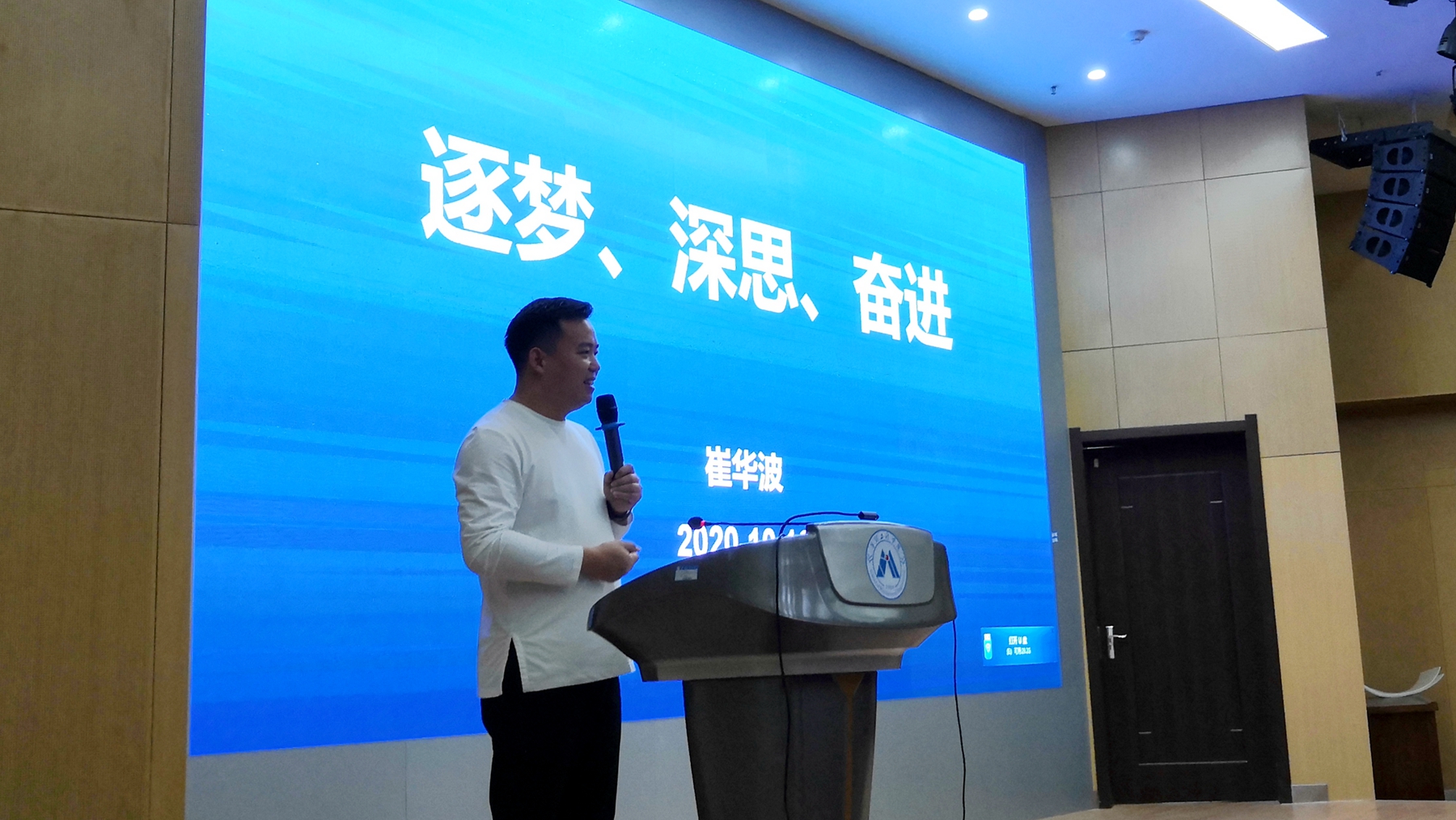 10月16日下午,经济与管理学院举办校友创业大讲堂暨经济与管理专业介绍报告会,邀请工商管理专业2007届优秀毕业生,原奥克斯家电集团总裁、广州华新集团执行总裁,现德州海天机电科技有限公司合伙人兼CEO崔华波校友返校,为学院新生及工商管理专业毕业生做了题为“逐梦、深思、奋进”的报告会。