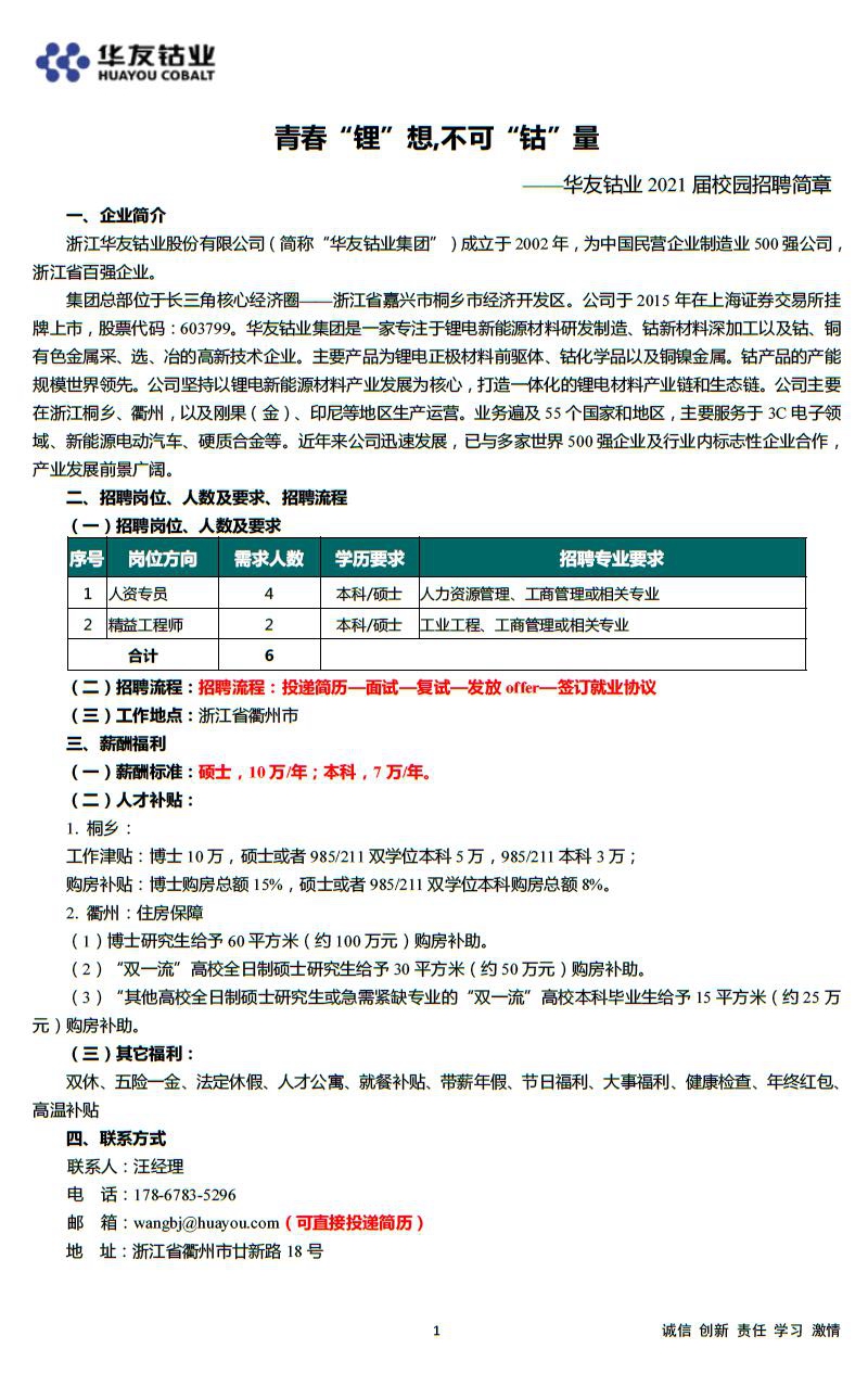 华友钴业2021 届校园招聘