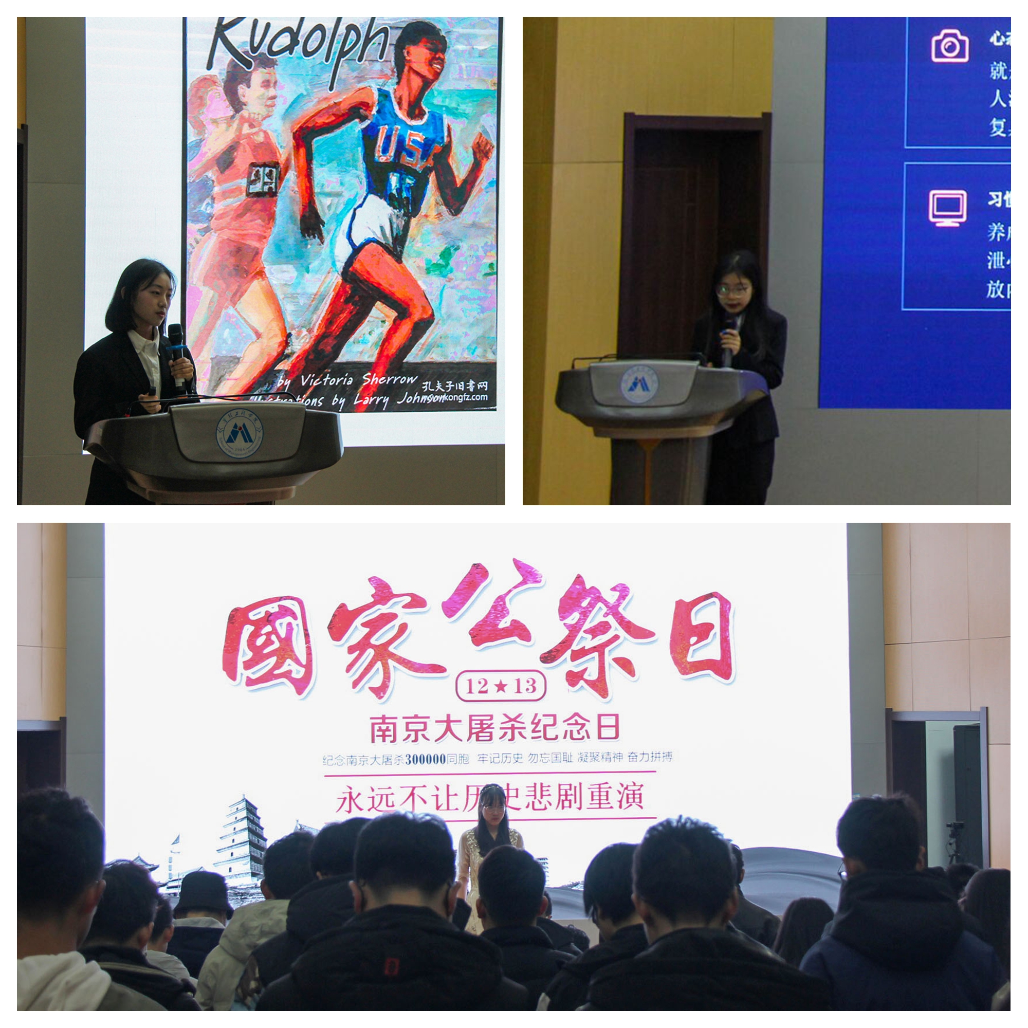 12月13日是南京大屠杀死难者公祭日,比赛开始前,现场所有活动参与者先进行三分钟默哀仪式。默哀仪式结束后,决赛正式开始。经过初赛的激烈角逐,共有十名选手成功进入决赛。活动形式以选手结合PPT进行演讲为主,他们以自己的亲身经历或身边的案例,讲述大学生普遍关注的、可能存在的心理健康问题,如:抑郁、自卑、迷茫、被嘲笑、理想与现实差距、拒做“老好人”等等。选手们在演讲中结合了身边的真实事件,讲述了心理健康对于现代人的重要性,同时也分享了拒绝抑郁、控制情绪的方法,精彩的演讲得了现场观众的共鸣。
