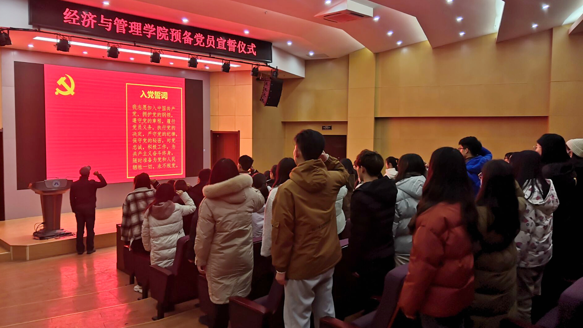 12月29日下午,经济与管理学院在C座7楼报告厅举行预备党员入党宣誓仪式,院党委副书记程繁出席仪式,活动由赵妍老师主持。