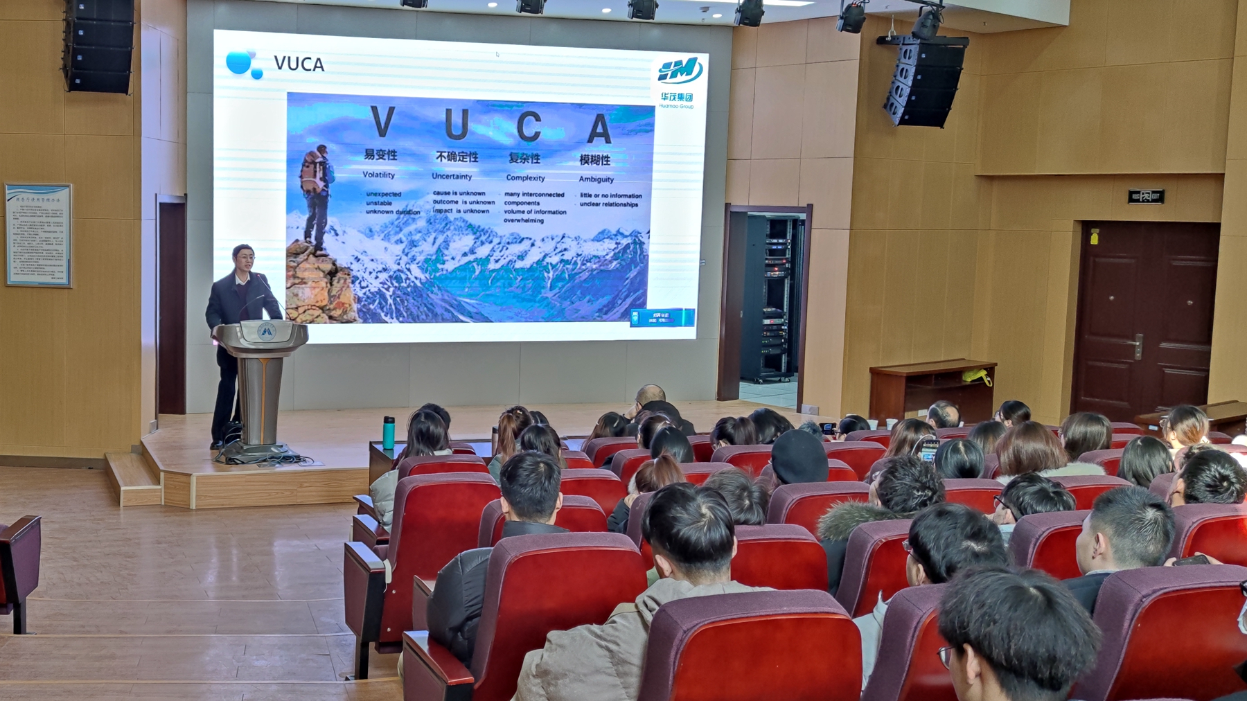 1月15日上午,经管学院工商管理系邀请安徽华茂纺织股份有限公司的人力资源部部长方文拓为工商管理和人力资源管理专业学生做专题报告,报告题目为“VUCK时代的组织和人才发展”。工商管理系教师、工商管理和人力资源管理专业近200名学生参加了此次报告会。报告会由工商管理系主任王凤莲主持。