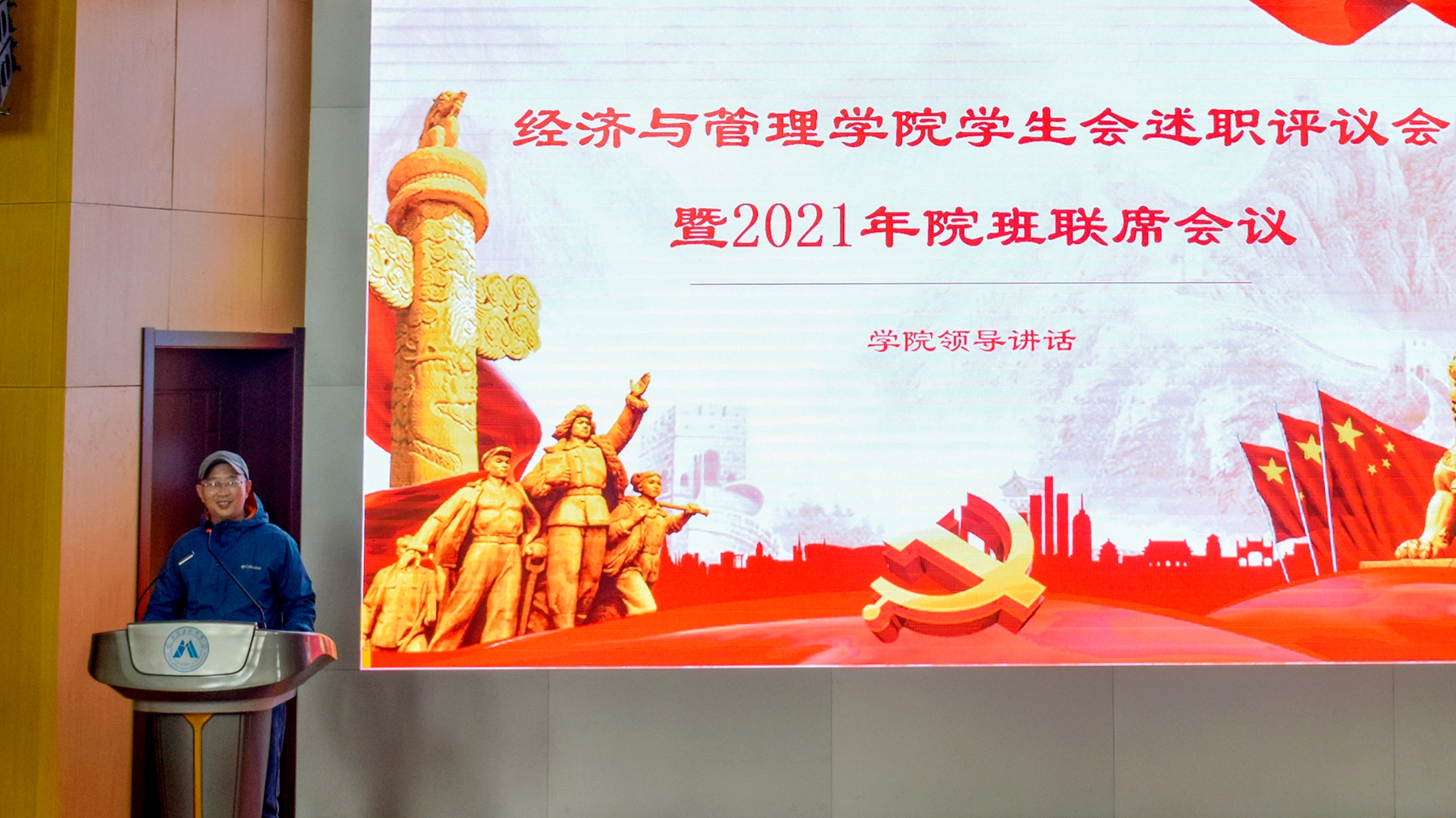 程繁代表学院党委对本届学生会上一学期的工作表示肯定和鼓励,并希望学生会在新的学期工作中更加注重社会主义核心价值观的培养,做好广大同学的思想引领;在今年的工作中全面融入党史教育,以更好的成绩迎接建党100周年;在工作过程中注重抓好工作规范性,进一步加强制度建设;加强各部门工作之间的沟通与协调。他强调,学生会成员及各班干部要在各自的学习、生活和工作中进一步发挥带头模范作用,树立经济与管理学院良好的学生形象。最后,章开杨和各班级班长开展院班交流会议并布置近期学生会工作事宜。