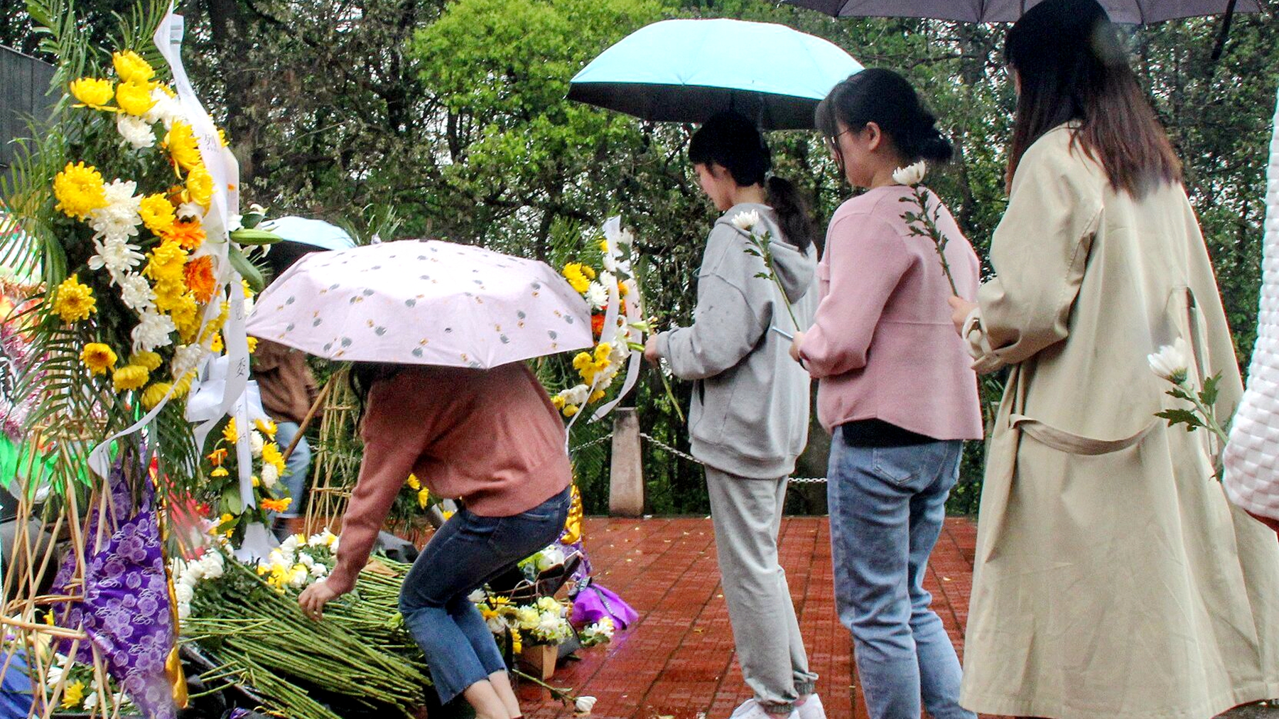 烈士纪念碑前,学员手持白菊花,神情凝重肃立,向烈士默哀三分钟,随后依次敬献鲜花,寄托哀思。学员在纪念碑前,面对党旗庄严宣誓,铭记对党的庄严承诺,坚定为党奋斗终身的理想信念。