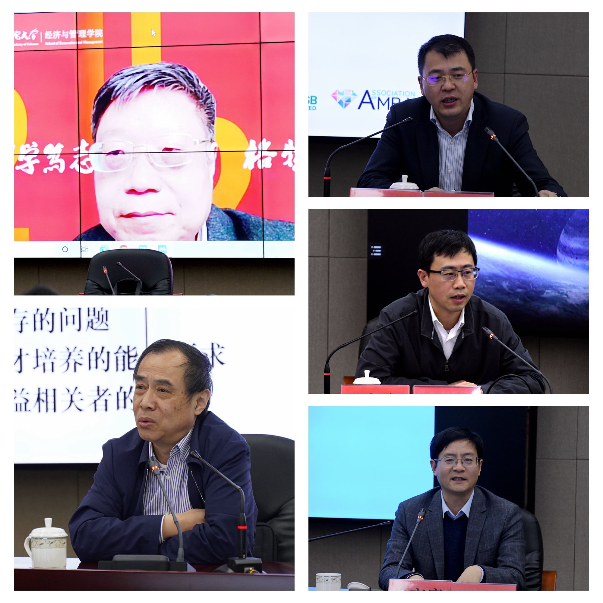 本次论坛以“‘百年未有之大变局’与‘新经管’学科高质量发展”为主题,邀请了合肥工业大学杨善林院士、中国科学院大学经济与管理学院院长汪寿阳院士、同济大学经济与管理学院院长李垣教授、北京科技大学经济管理学院院长闫相斌教授、合肥工业大学管理学院院长胡笑旋教授、南京信息工程大学管理工程学院院长巩在武教授做主旨发言。300余名相关领域专家和师生通过线下或线上方式参加。会议由副校长费为银教授主持。