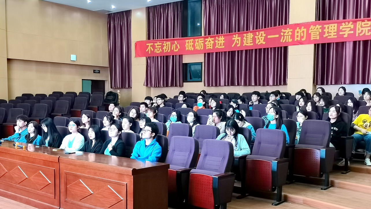 王凤莲介绍了近几年工商管理系的总体考研状况,她寄语准备考研的同学:工商管理和人力资源管理专业学生可以报考的学校和专业较为广泛,要树立合理的考研目标并为之不懈奋斗,要充分借鉴考研成功同学的经验,积极用心备考,坚持不懈,追逐梦想。丁一分享了考研经验,并简单描绘了研究生的生活和人生规划发展,指出当下人才竞争更加激烈,唯有不断提升自己才能立于不败之地,希望同学们不忘初心,勇攀高峰。