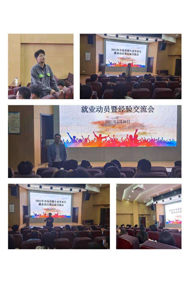 为贯彻落实党中央、国务院“稳就业”“保就业”决策部署,积极引导2021届市场营销专业毕业生到国家最需要的地方去就业创业、建功立业,指导青年人树立正确的就业观,更好的开展职业规划,牢牢把握就业机会,优质就业,4月28日下午,经济与管理学院市场营销系教师党支部联系市场营销系部和市场营销专业学生党支部,在C座七楼报告厅召开2021届市场营销专业毕业生就业动员暨经验交流会。市场营销系副主任李小东老师、市场营销系教室党支部支委纵翠丽老师、党员教师代表何治国和李国富老师,以及市场营销专业学生党支部书记、专业辅导员吴梦琦、2017级市场营销专业全体毕业生参加了会议。