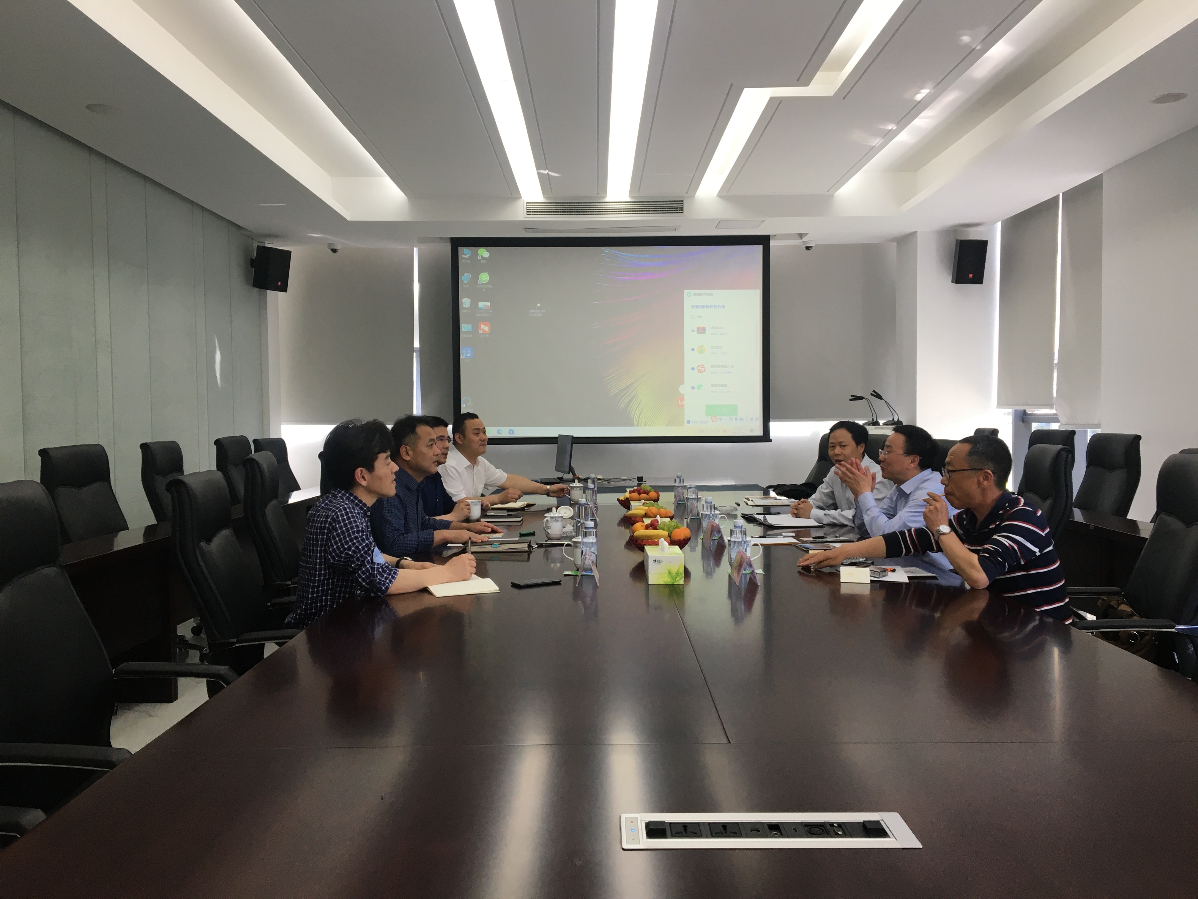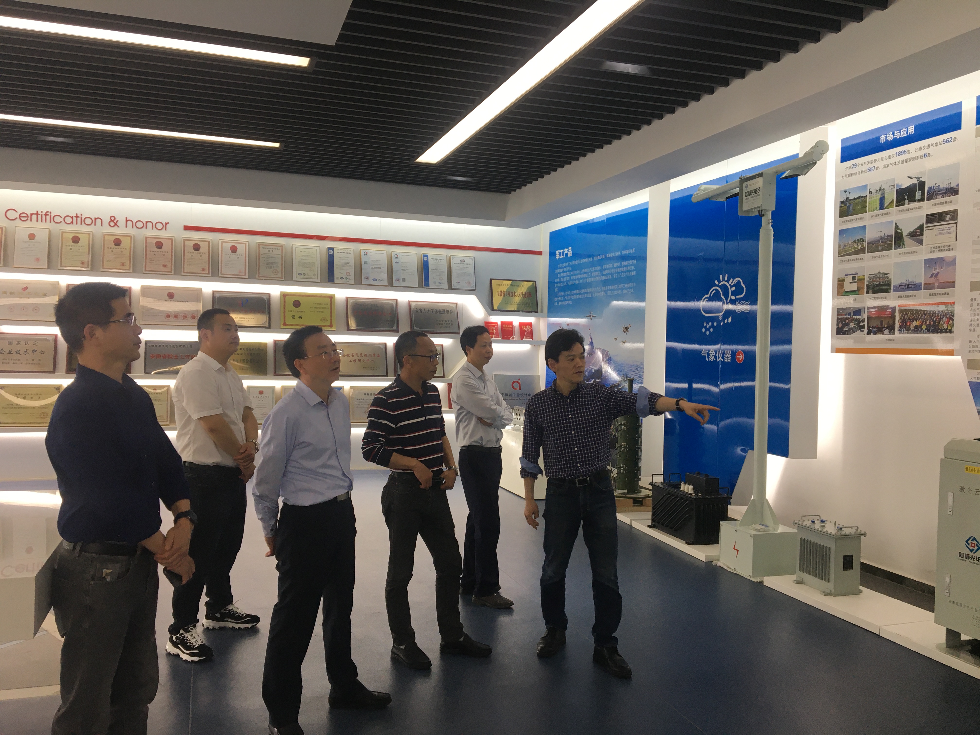 龚本刚首先对安徽蓝盾光电子股份有限公司的热情接待和长期对学院的支持表示感谢,他介绍了学院近年在专业建设、人才培养等方面取得的进步与发展;其次,就大数据环境监测与评价、智慧物流与交通管理等产学研方向进行了探讨,最后,围绕产学研合作具体如何落实,在申报安徽省科技重大专项、建立大数据环境监测与评价联合实验室、建立研究生培养实践基地等方面进行了深入沟通。