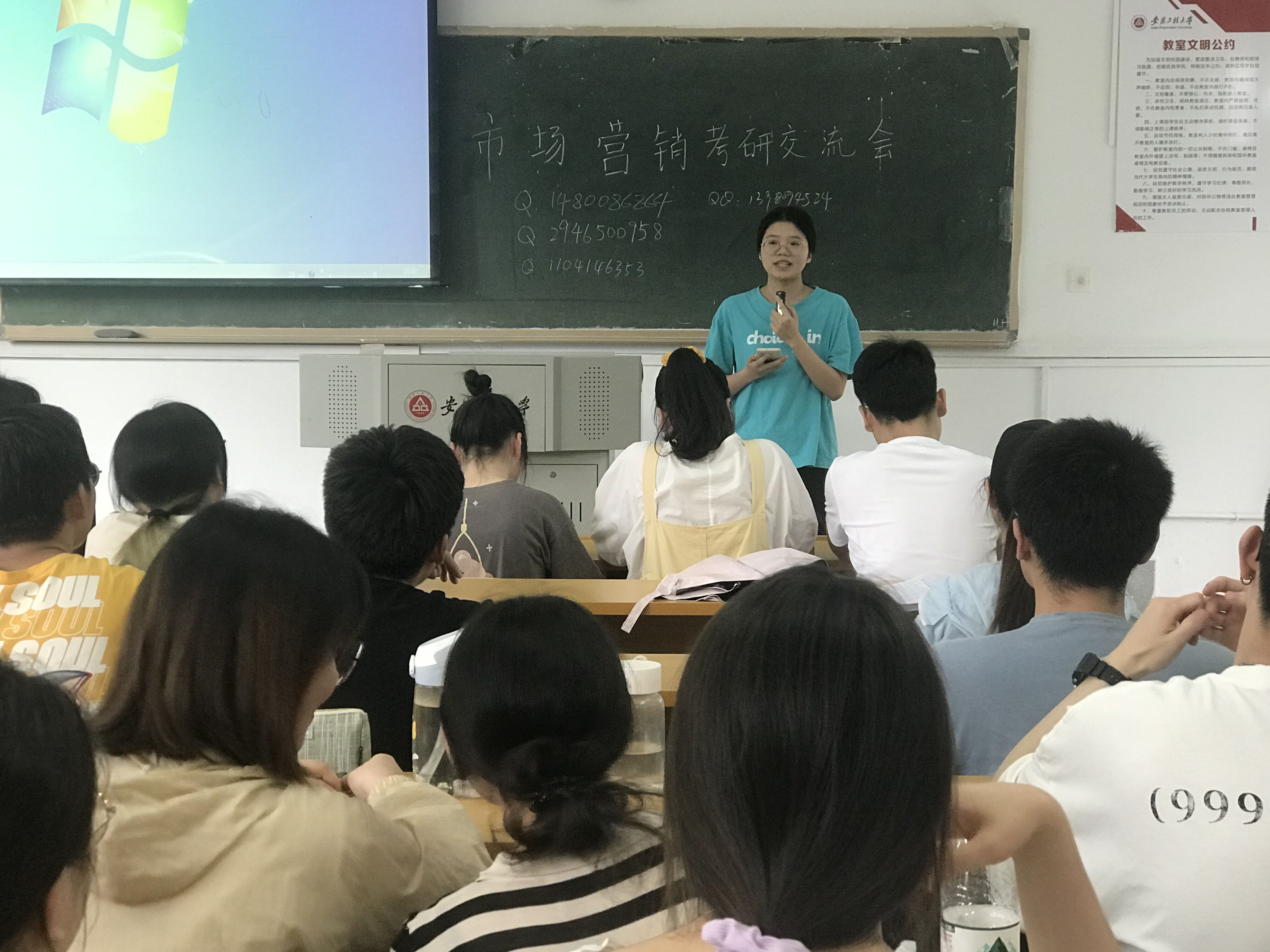 交流会分两个环节进行,首先,五位学长学姐分别介绍了自己的考研初试、复试考研复习、准备及最终录取的院校和专业等情况,谈了自己考研的心得体会。
