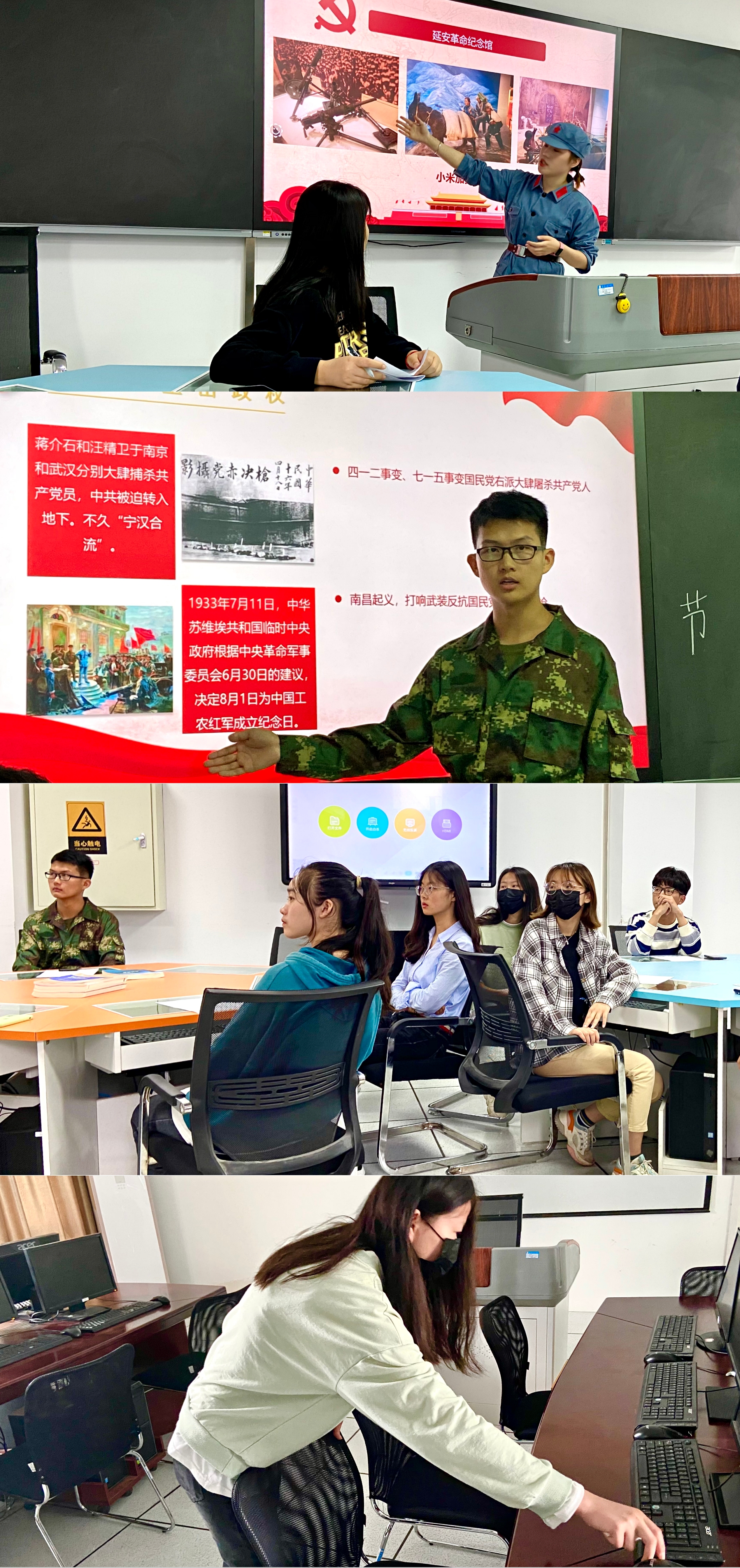 贺如意以“弘扬延安精神,传承红色基因”为主题进行宣讲,她指出,延安是中国共产党的革命圣地,是中华民族解放的大后方,学习党史必然缺少不了延安精神。它是中国共产党创造的一种革命精神,是中国革命和建设的伟大精神动力,致敬百年党业,要大力传承延安精神。童向南将“军旅伴我成长”作为着眼点,向同学们讲述了忠党、信党的必要性和重要性。他强调,历史向我们证明,只有枪杆子里才能出政权,只有无比忠诚的枪杆子,我党才能一直从胜利走向胜利,一直保障人民的幸福生活。军队忠于党,党员更要忠于党,我们要有党员的觉悟,要身体力行去为党的事业添砖加瓦,做新时代的优秀大学生。