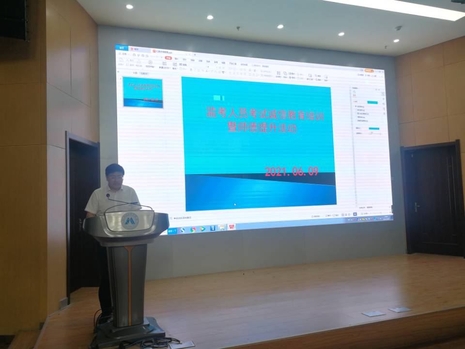 根据教务处《关于开展监考人员考试诚信教育的通知》要求,6月9日下午,经济与管理学院组织全体教师开展考试诚信教育培训暨师德提升活动,活动由副院长谢荣见主持。