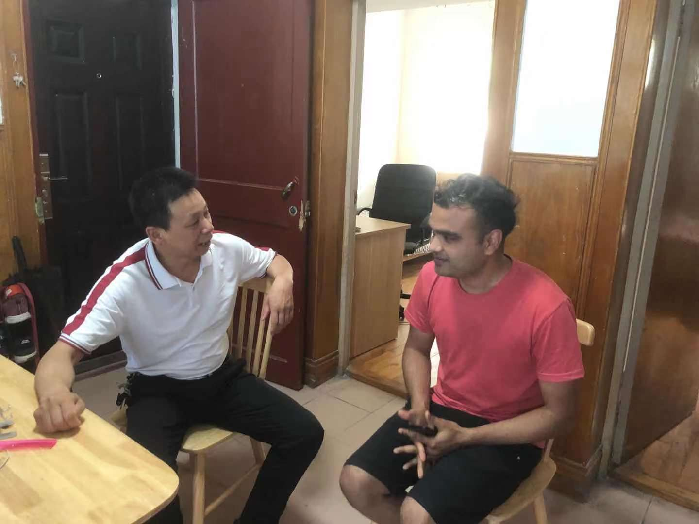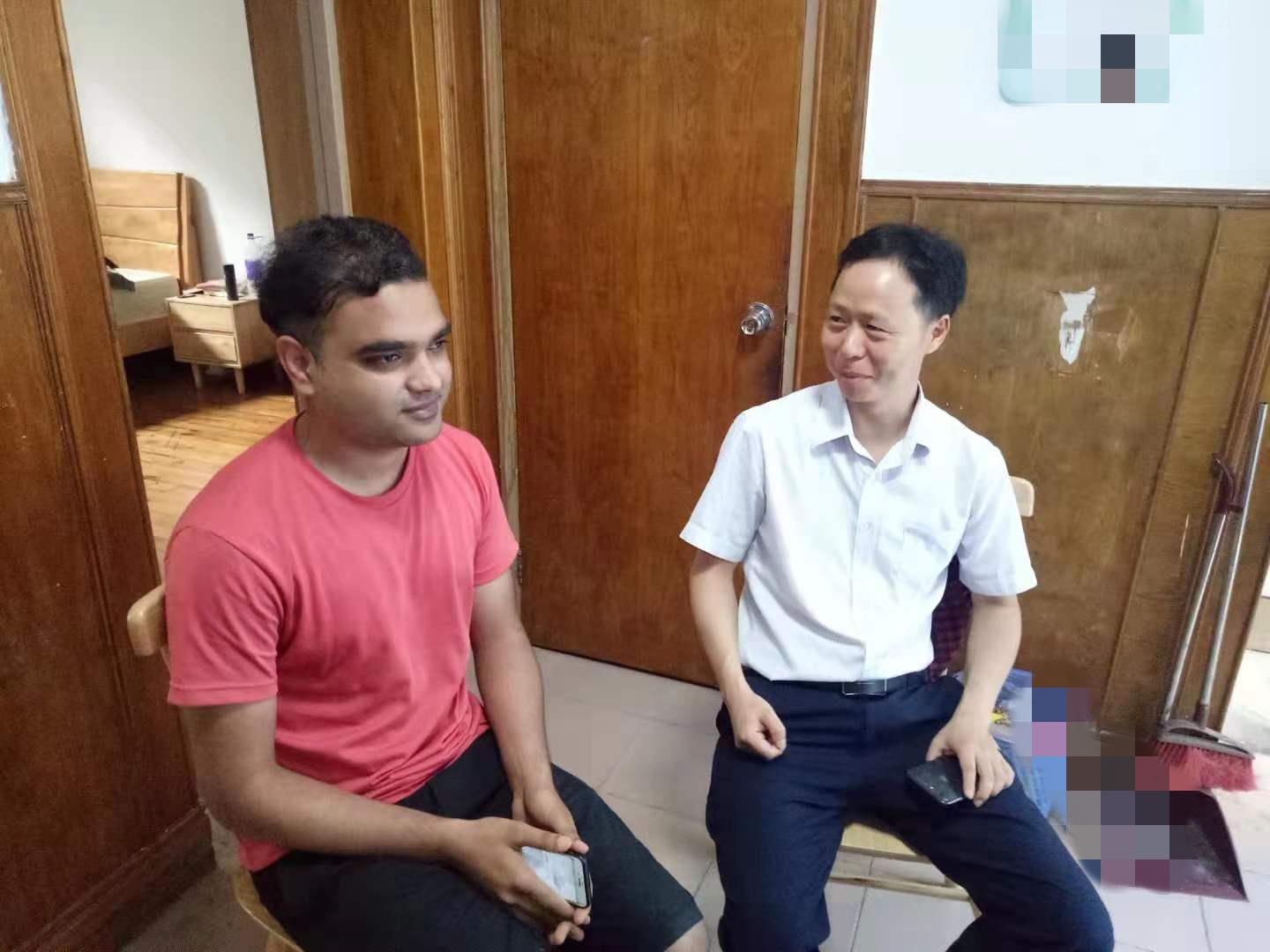 在庆祝建党百年前夕,经济与管理学院党委副书记章兵、副院长蔡书凯,走访我院新引进的外籍专家教师Yasir博士。