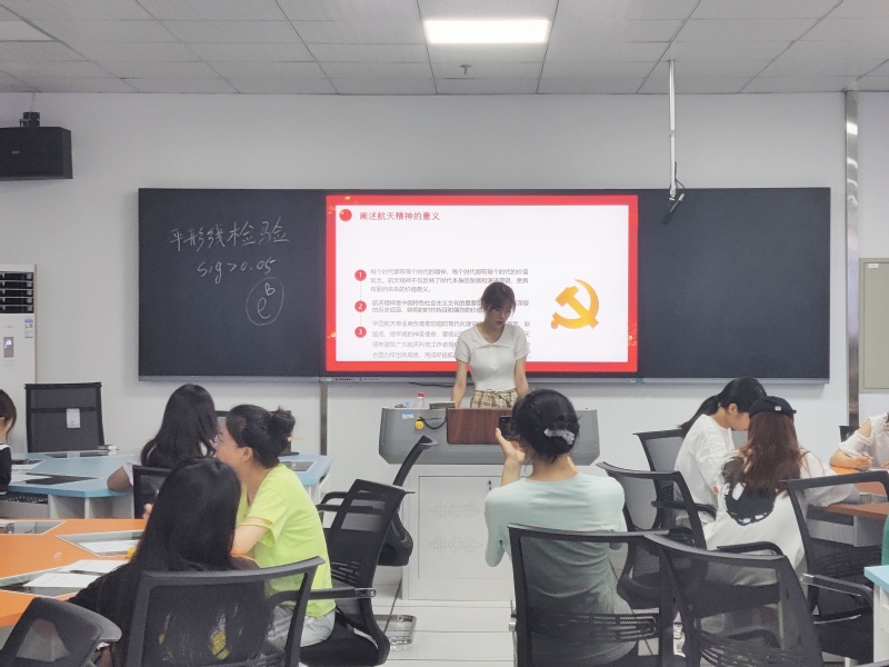 胡戎明月同学以“载人航天精神”为主题,带领同学们深入了解这一伟大的时代精神,共同探寻航天发展历程中的小故事。胡戎明月指出,发展载人航天事业是党和国家长期关注、高度重视的一项伟大工程。上世纪60年代,以毛泽东主席为代表的党中央毅然决定研制两弹一星。2003年10月15日,神舟5号载人飞船将中国首位航天员杨利伟送上太空,中华民族千年飞天梦想终成现实。载人航天精神是2005年10月17日,我国自主研制的神舟六号载人飞船顺利返回后提出的,其基本内涵是“特别能吃苦,特别能战斗,特别能攻关,特别能奉献。”,是中国在这个时代所展现的民族精神!胡戎明月带领大家回顾了中国航天发展历史的历程,细数了这一历程中中国航天事业所取得的各种成就,在场同学无不为之感到骄傲和自豪。伟大的事业孕育伟大的精神,伟大的精神推动伟大的事业。载人航天精神也将在中华民族伟大复兴的历史伟业中,给予中华儿女最充分的动力。