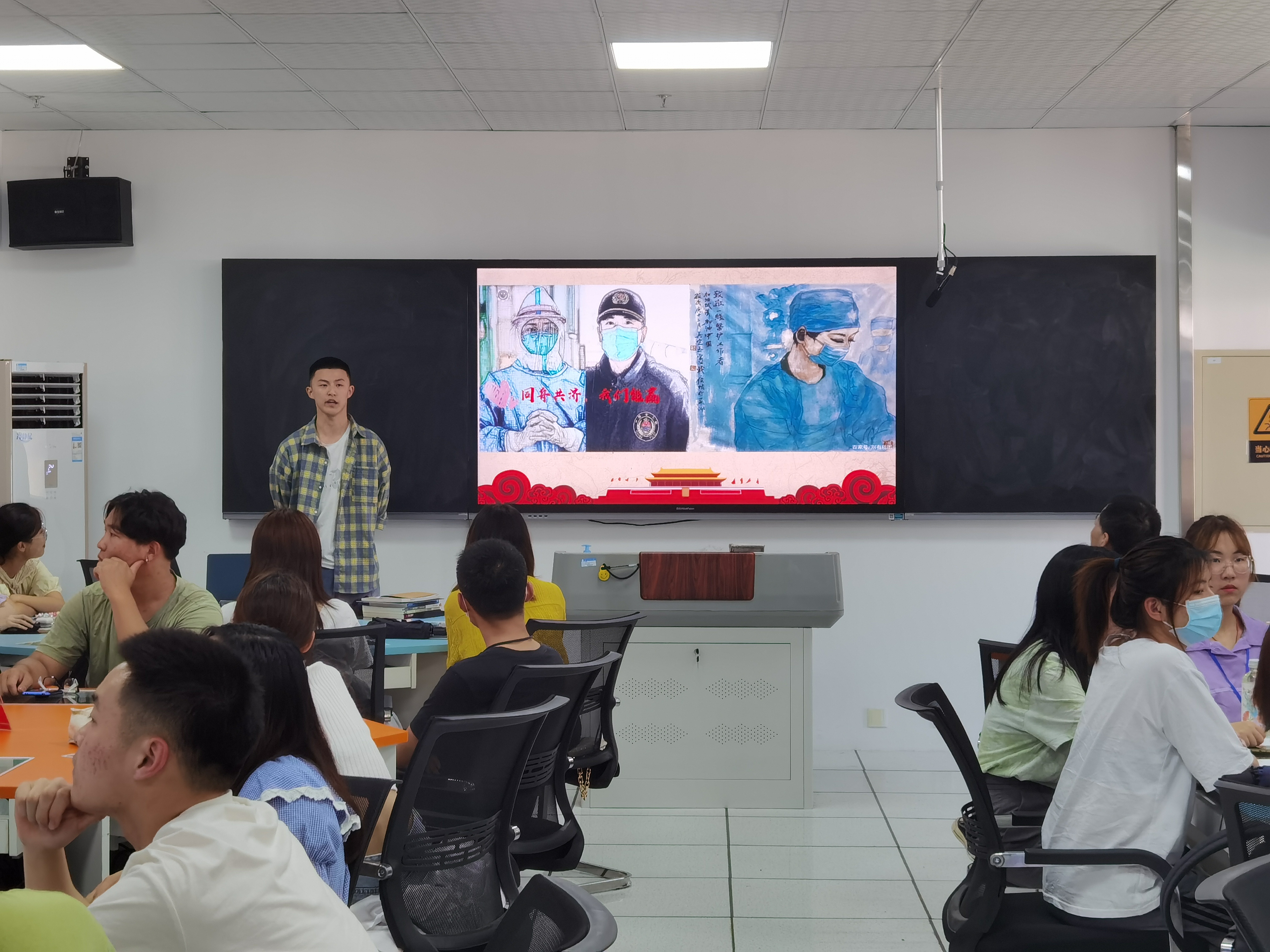张弛同学以“抗疫精神”为主题,带领同学们深入了解这一伟大的时代精神,共同感受抗疫期间在党的领导下中国人民展现的责任与担当。张弛同学指出抗疫精神的内涵是生命至上、举国同心、舍生忘死、尊重科学、命运与共。在疫情期间,中国人民展现的众志成城,守望相助的精神是有目共睹的,正因如此,中国抗疫取得了令世界瞩目的成效。“哪有什么岁月静好,不过是有人负重前行”,张弛同学指出“:英雄从来不是一个人,而是一个集体,甚至一个民族”。抗疫期间,奔赴一线的医护人员,坚守岗位的劳动者等共同铸就了伟大的抗疫精神。伟大的抗疫精神是实现百年奋斗目标的强劲动力,也是中国共产党具有无比坚强领导力的集中体现,更是社会主义核心价值观最生动最集中的诠释表达。