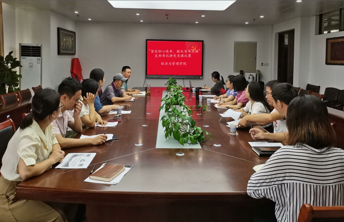 为庆祝中国共产党建党100周年,回顾党的奋斗历史,讴歌党的光辉业绩,充分展示百年大党的精神引领力,展现基层党支部书记风采,在迎接党百年华诞之际,6月28日上午,经济与管理学院在C座818会议室开展学生党支部书记讲党史课比赛,学院4位教师党支部书记担任评委,学院党委副书记章兵、程繁到现场全程观看了比赛。