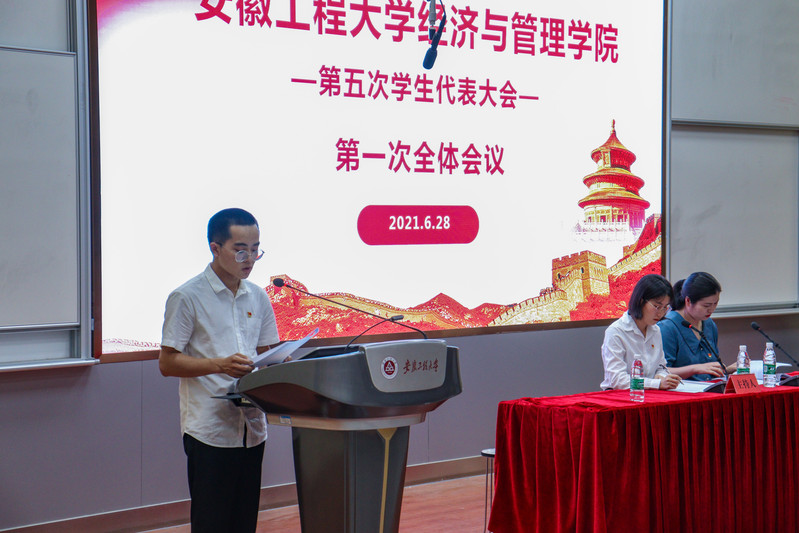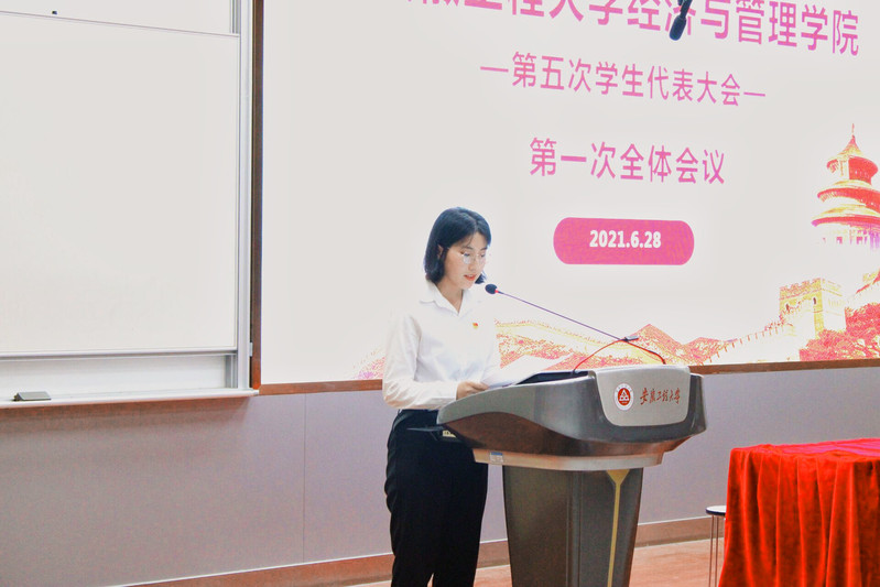 大会代表们听取、审议并通过了章开杨代表经济与管理学院第四届学生委员会所做的《落实改革,勇于创新,团结带领广大同学跟党走,奋进新征程》的报告以及徐敏代表第33届团委学生会所作的《学党史、强信念、跟党走,以优异成绩庆祝建党百年,为开创我院学生会工作新局面努力奋斗》的工作报告。