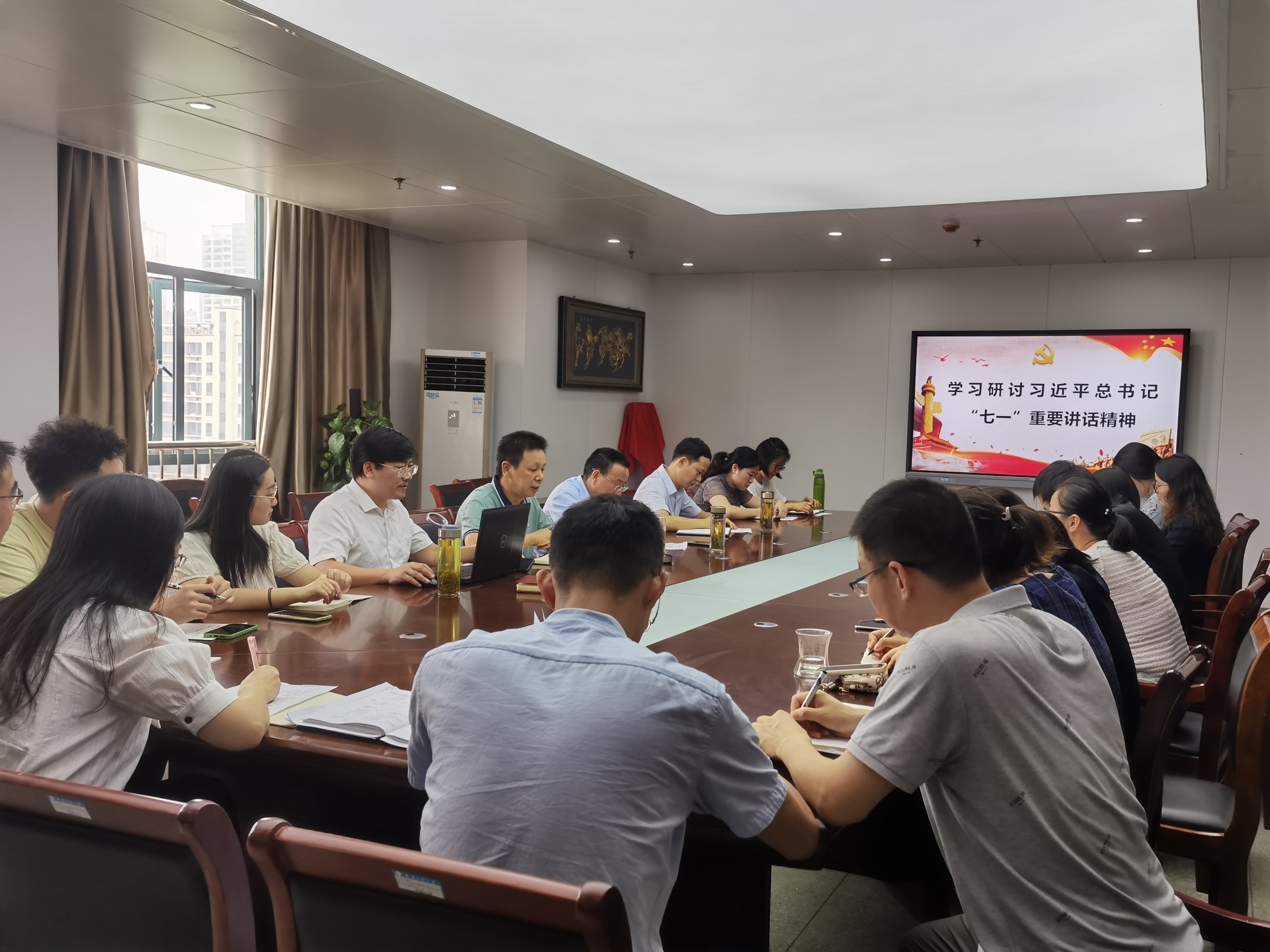 最后,章兵对学院暑期党史学习教育开展情况做了总结,并对下阶段的学习提出了要求,一是要把学习习近平总书记“七一”讲话精神作为当前和今后一段时期党史学习教育的重大政治任务,深入领会“七一”重要讲话精神的重大意义、深刻内涵、核心要义、实践要求,切实把思想和行动统一到讲话精神上来,做到学深悟透;二是要做到学思用贯通、知信行统一,把党史学习教育成效转化为推动工作、破解难题的本领,内化为干事创业、推动学院奋进发展的动力;三是各党支部要协助学院做好开学初疫情防控、学生开学、专业认证、一流专业申报、人才引育、教育教学、科学研究、发展关键指标的落实工作,并与“我为师生办实事”一体推进,让“党旗一直在基层一线高高飘扬”。