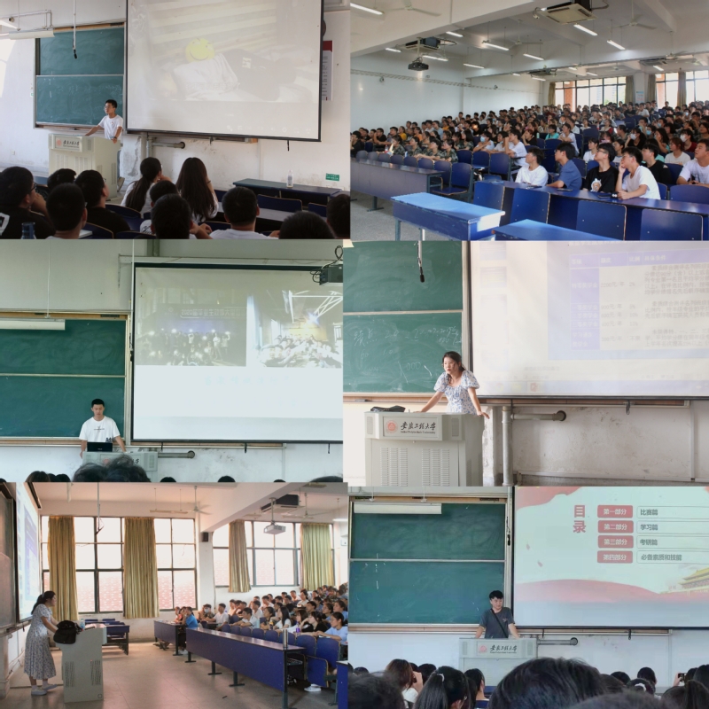 章开杨以“这次我们走好自己的四步阶梯”为题建议新生们:大学的不同阶段要有不同的规划,应结合自己的兴趣和能力进行选择,走好自己的四步“台阶”。宛雨洁的演讲主题为“萌新入学指南”,向大一新生表达了珍惜时光,所愿皆所得的美好祝愿。张弛以“让优秀成为一种习惯”为题,勉励新生应树立忧患意识,切勿懒惰散漫度过大学时光。任标标以“如何丰富自己的大学生活”为题,从“比赛篇”、“学习篇”、“考研篇”、“必备素质与技能”四个方面给新生答疑解惑,鼓励新生大一大二期间要勤奋学习打好基础,多发展兴趣爱好,大三可以着手开始准备考研。