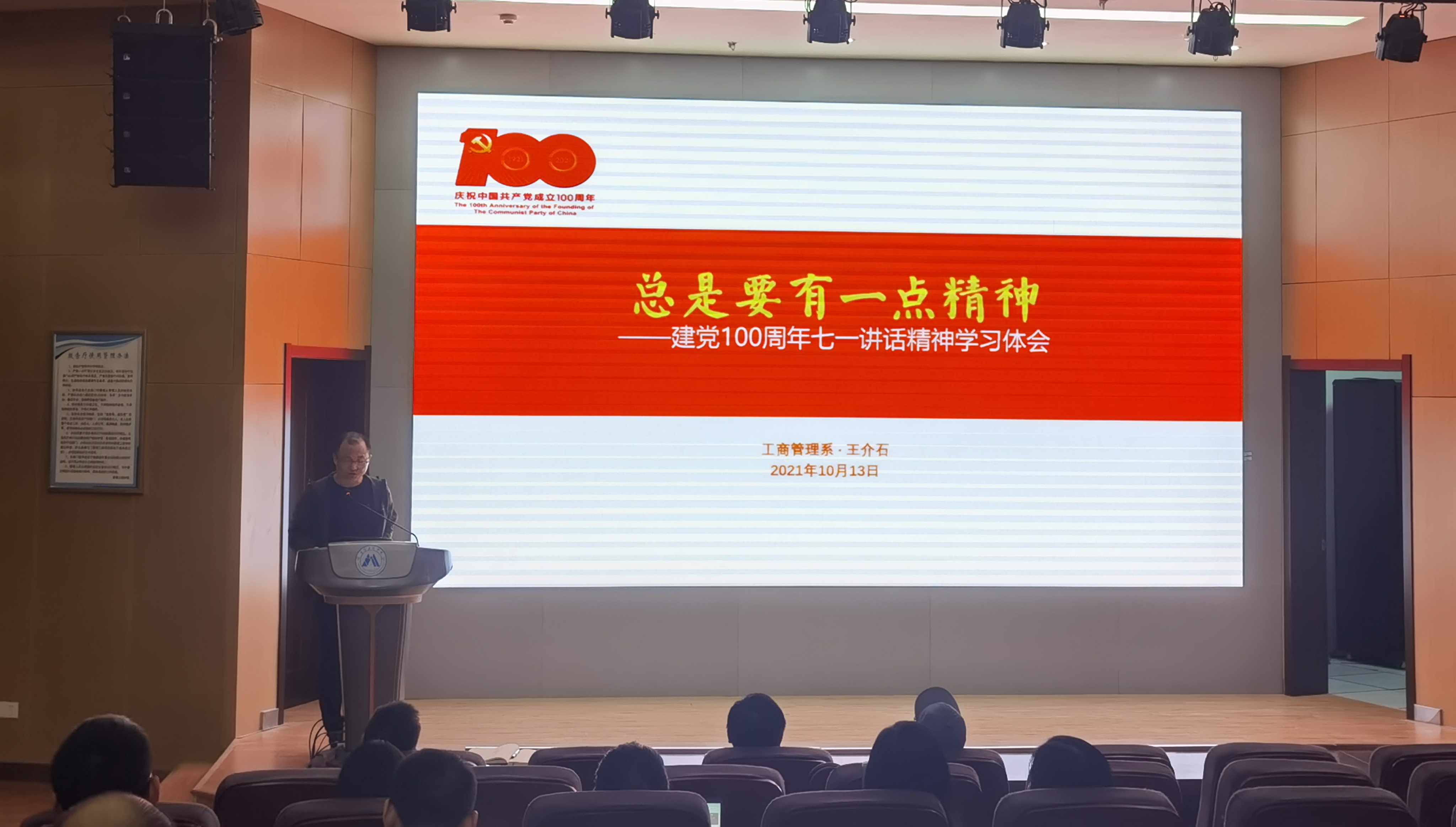 活动中,工商管理系王介石老师以“总是要有一点精神”为主题,运用数据对比分析的方法,通过对中国共产党与世界政党的历史、规模对比,习近平总书记建党95周年和建党100周年七一讲话词云与内容对比,立体展现了中国共产党100年来苦难与辉煌的曲折历史,坚定清晰的发展哲学,影响世界的理论创新和实践智慧。王老师结合《长津湖》电影、科学家案例、热点话题、自身实际,围绕中国共产党建党精神、共产党人第一批精神谱系,分享了新时代新阶段的精神立树与信守的价值意蕴,进一步深化了“总是要有一点精神”的分享主题。