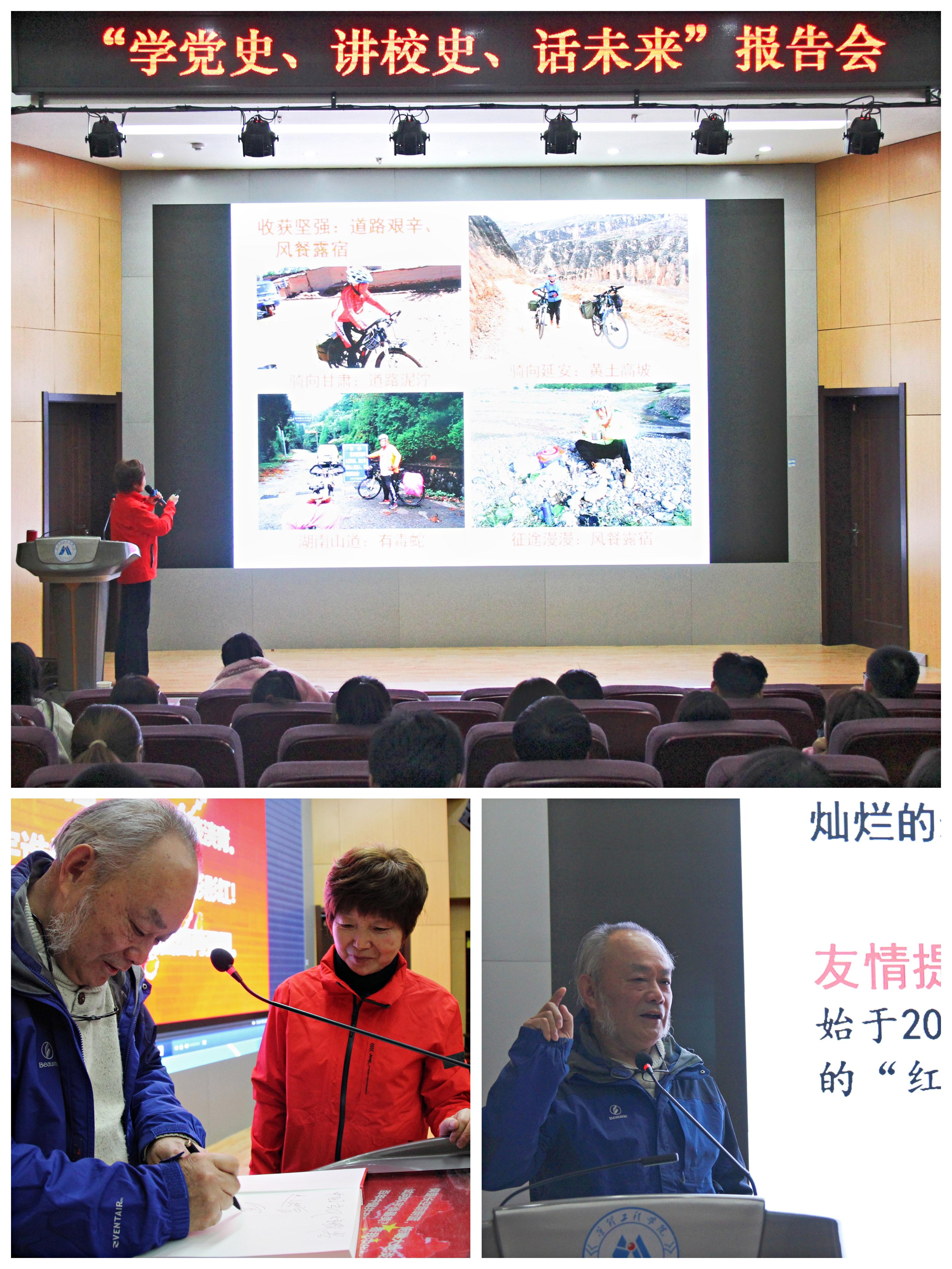 赵国庆教授和曹锦芬医生,带领同学们一同回顾了学校的发展历程,回顾了红色骑行十万里的不凡岁月,领略10万里的漫漫长征,在骑行过程中、在党的百年发展历程中的一个个重要地点和人物中,感受党的伟大,感受对党的认识提高和自信,以及快乐与坚持。两位老师指出,在新时代,红色骑行精神的意义仍然有待去发掘和弘扬,要始终秉持实事求是、艰苦奋斗的红色骑行精神,为实现“两个一百年”的奋斗目标提供强大的精神力量。赵国庆教授用自己的旅途经历让同学们感受到了心灵震撼:中国共产党是伟大光荣且正确的,是人民的领头羊、保护伞,全心全意为人民服务。两位老师结合自己风雨兼程的经历,提醒当代大学生应要坚持正确的政治方向,永远跟党走,更要加深对自己学校的理解;要善于运用红色骑行精神,无论遇到任何困难都要坚持不懈,通过每一次的锻炼来增强自己能力和理想信念。