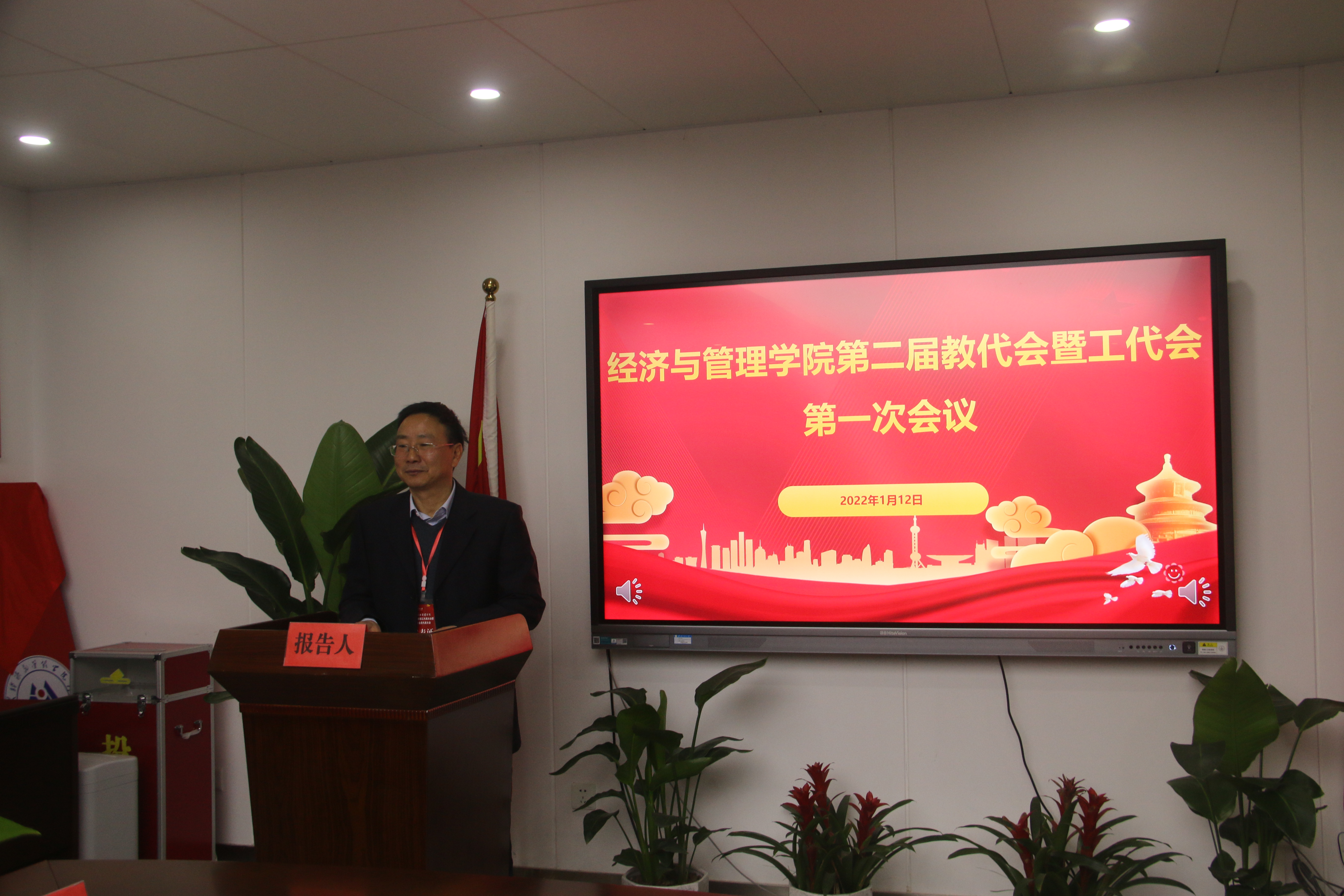 正式会议在雄壮的国歌声中拉开帷幕。张寅红代表校工会对大会的召开表示祝贺。她指出,经济与管理学院第二届教职工代表大会暨工会会员代表大会的召开是学院建设发展和民主政治建设进程中的一件大事,标志着学院民主政治建设和管理进一步健全完善,必将对学院事业的发展和实施民主管理起到积极的推动和促进作用。希望全体代表以严谨务实的态度和高度负责的精神,牢记使命,履职尽责。