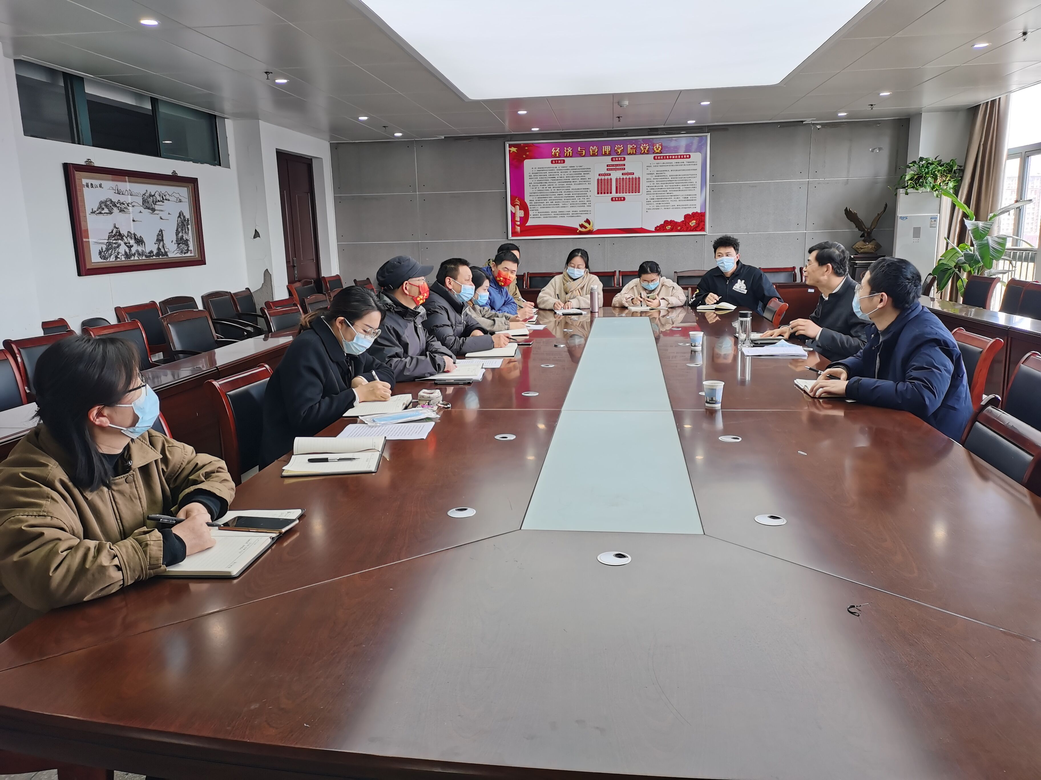 3月24日上午,学生处处长刘金斌一行到经济与管理学院调研指导工作,学院党委副书记章兵、程繁,团委书记赵恒梅,全体辅导员参加了调研座谈。