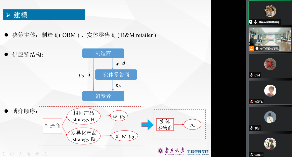 报告会后,肖条军教授与我院师生就消费者搭便车行为研究双渠道产品差异化、搭便车行为如何刻画模型、供应链未来研究主题等问题展开进一步交流和讨论。