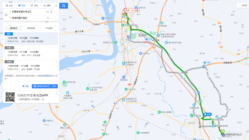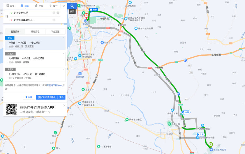 方式二:机场大巴(芜宣机场至芜湖游客集散中心,约45分钟,车费20元,发车时间段9:20-23:30)+打车(芜湖游客集散中心至芜湖悦圆方酒店,约15分钟,车费20元),全程约55公里,耗时约1小时。