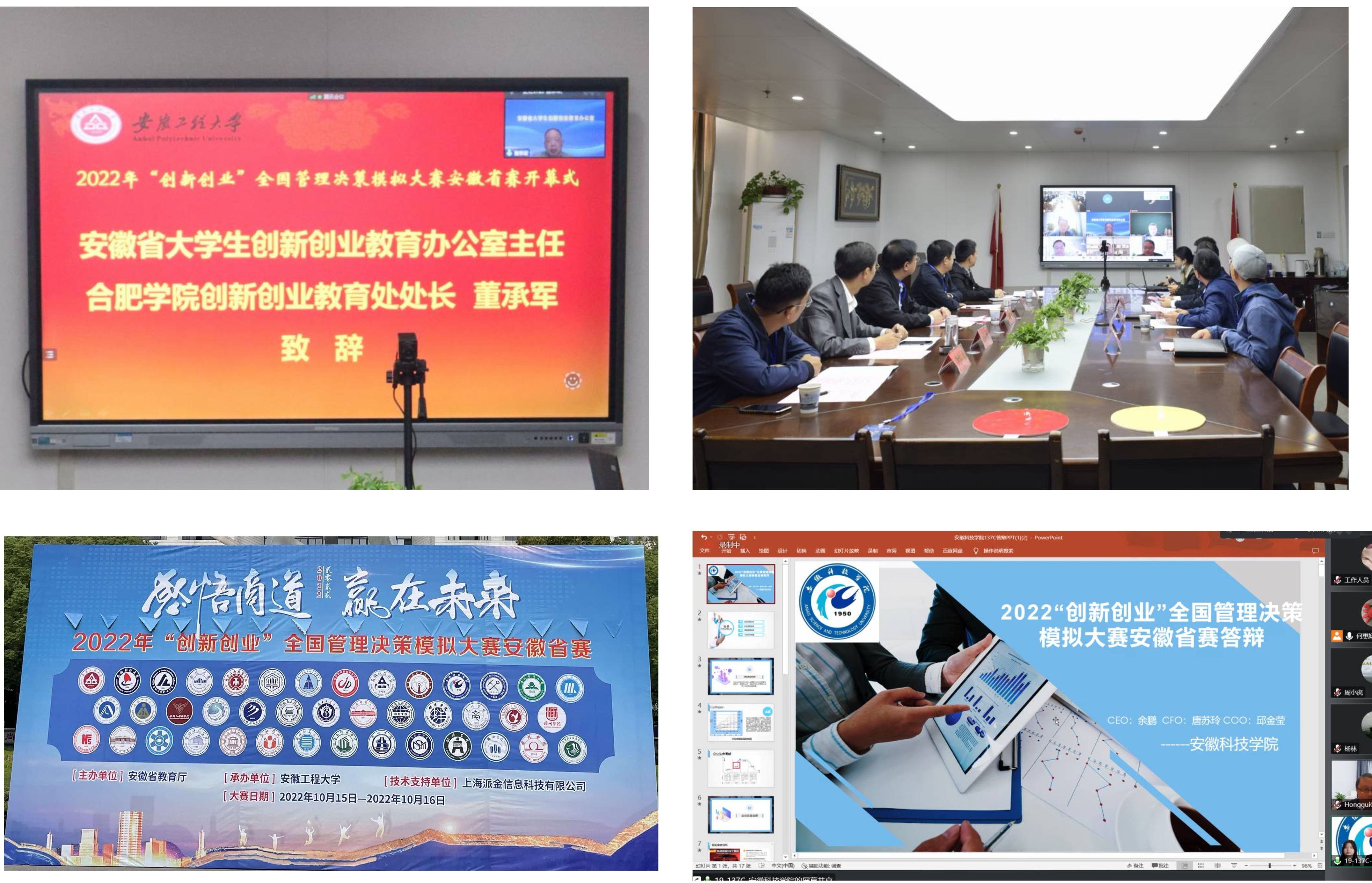 10月15至16日,由安徽省教育厅主办、RayBetApp官网下载 承办的2022年“创新创业”全国管理决策模拟大赛安徽省赛在RayBetApp官网下载 举行,来自合肥工业大学、安徽大学、安徽师范大学、安徽工业大学、安徽财经大学和RayBetApp官网下载 等42所高校的125支队伍参加了本次比赛。本次比赛采用线上方式举行。