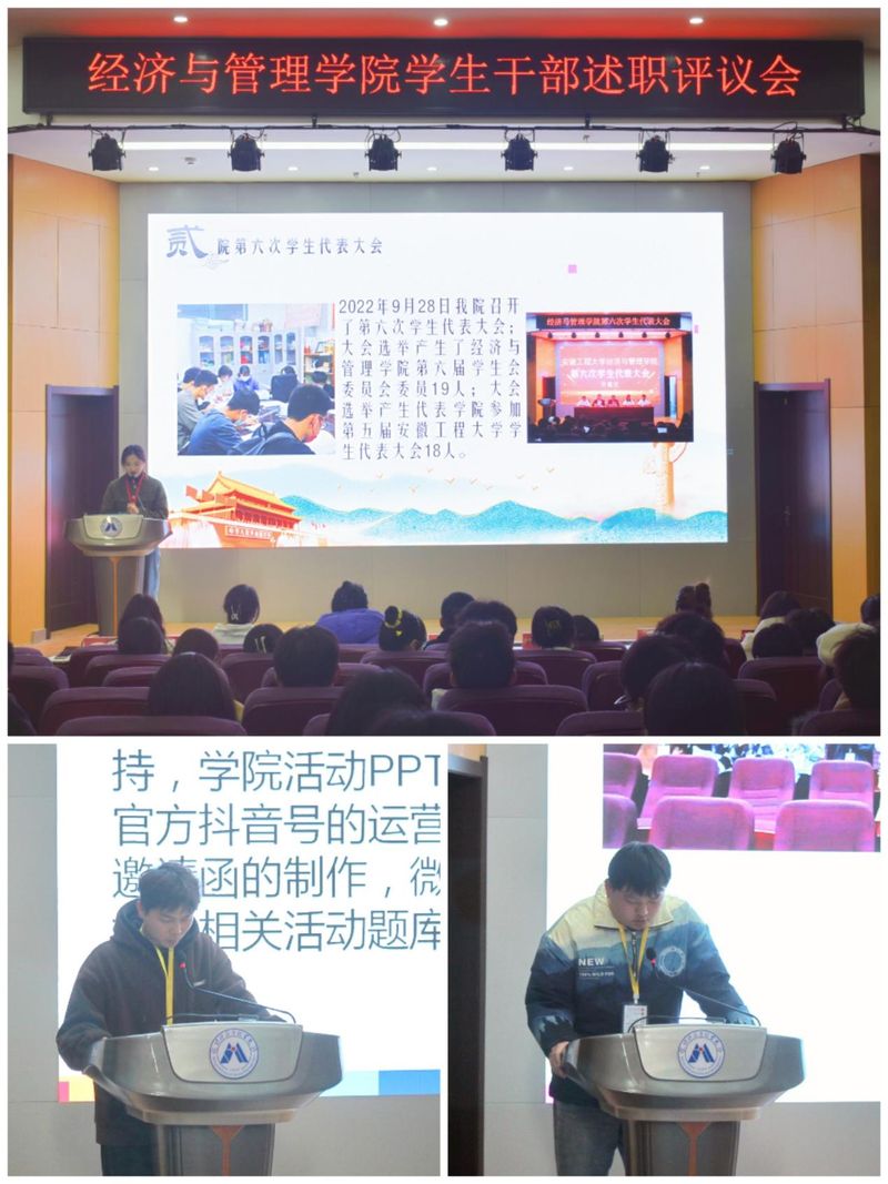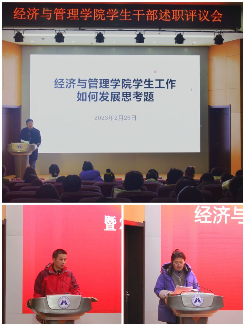 为进一步深化院团委学生会改革,落实校“三抓”工作要求,加强对学生干部的教育、管理和监督,规范述职评议工作,经济与管理学院于2月26日下午2:30在C座七楼报告厅举办院团委学生会工作人员述职评议会议暨2023年院班联席会议。学院党委副书记刘海涛、副院长桂云苗、院团委书记赵恒梅、院团委学生会工作人员以及班级学生代表共150余人参加了本次会议。