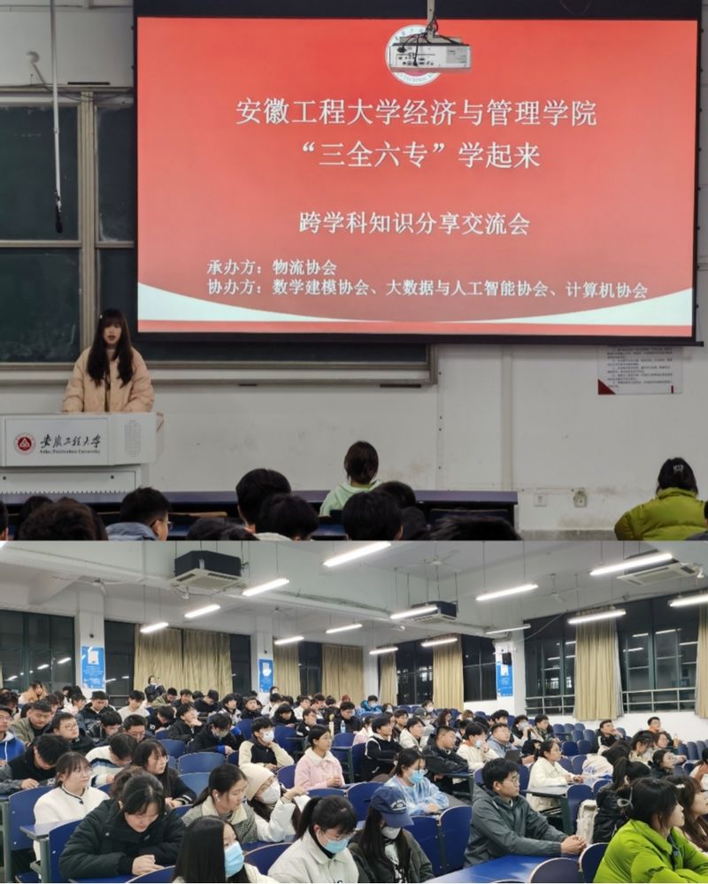 为了宣传党的二十大精神和落实学校“三全六专”育人实践工作要求,经济与管理学院于3月17日晚举办跨学科知识分享交流会。本次活动由物流协会承办,数学建模协会、大数据与人工智能协会、计算机协会共同协办。学院各年级各专业200余名同学共同参加,特邀4位来自不同专业的优秀学生代表进行竞赛知识和经验分享。让不同学科“跨”起来,让所有同学“学”起来。