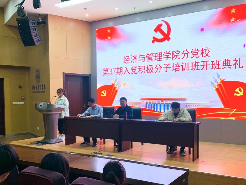 为进一步提升党员发展质量,加强对入党积极分子的教育和培养,让他们更加系统地学习和掌握党的基本知识、党的最新理论,深化对党的认识。4月28日下午,经济与管理学院分党校在C座7楼报告厅隆重举行第三十七期入党积极分子培训班开班式。学院党委副书记刘海涛、学院组织员吴兆克、辅导员及第三十七期143名入党积极分子共同参加开班仪式。开班式由班主任高天宇主持。