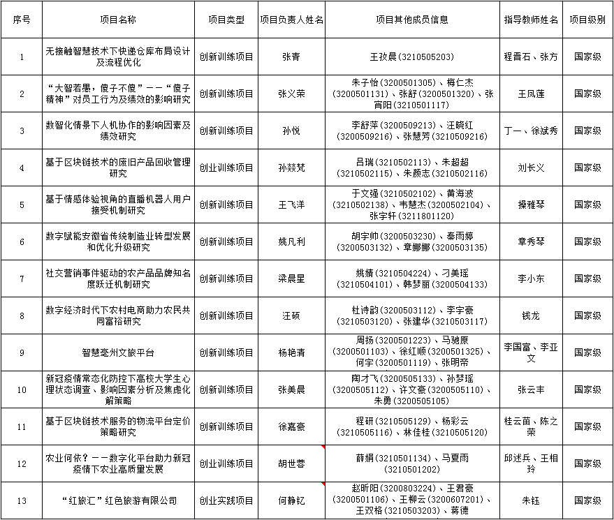 2022年国家级大学生创新创业训练计划项目立项名单