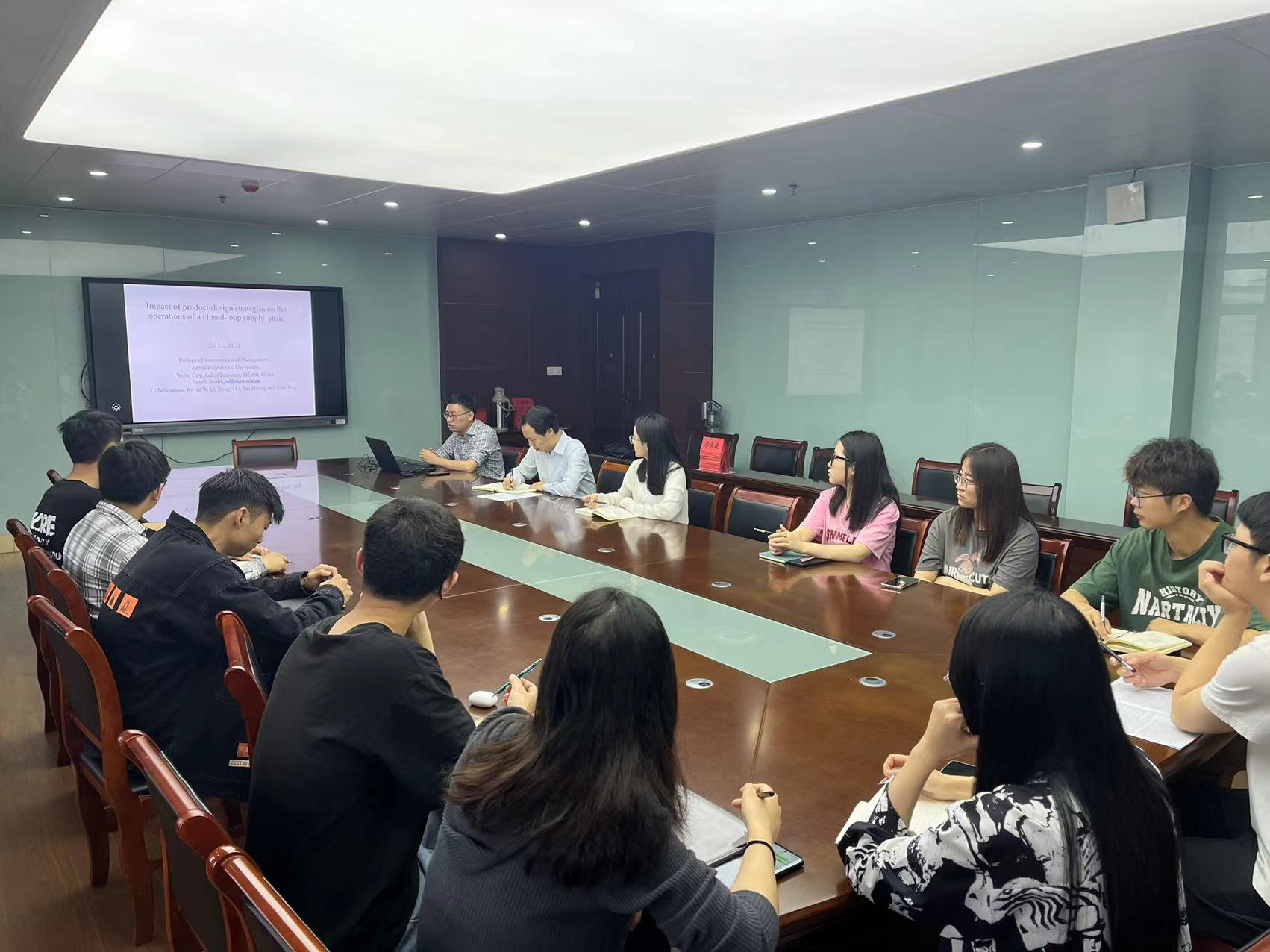 刘志副教授以《产品可持续性设计策略对闭环供应链运作的影响》为题,分析了再制造产品对新产品需求的影响,并以联想电脑为案例揭示了零部件设计策略最终产品的设计、生产和再制造的影响;然后,通过模型的建立与求解展示了制造商的最优再制造策略产品可再制造性设计策略与闭环供应链的再制造策略、经济经济效益和环境绩效之间的联系,并提出再制造并不总是对闭环供应链成员或环境有利;最后,刘志向大家讲述了这篇文章的撰写背景以及撰写过程中的难点。
