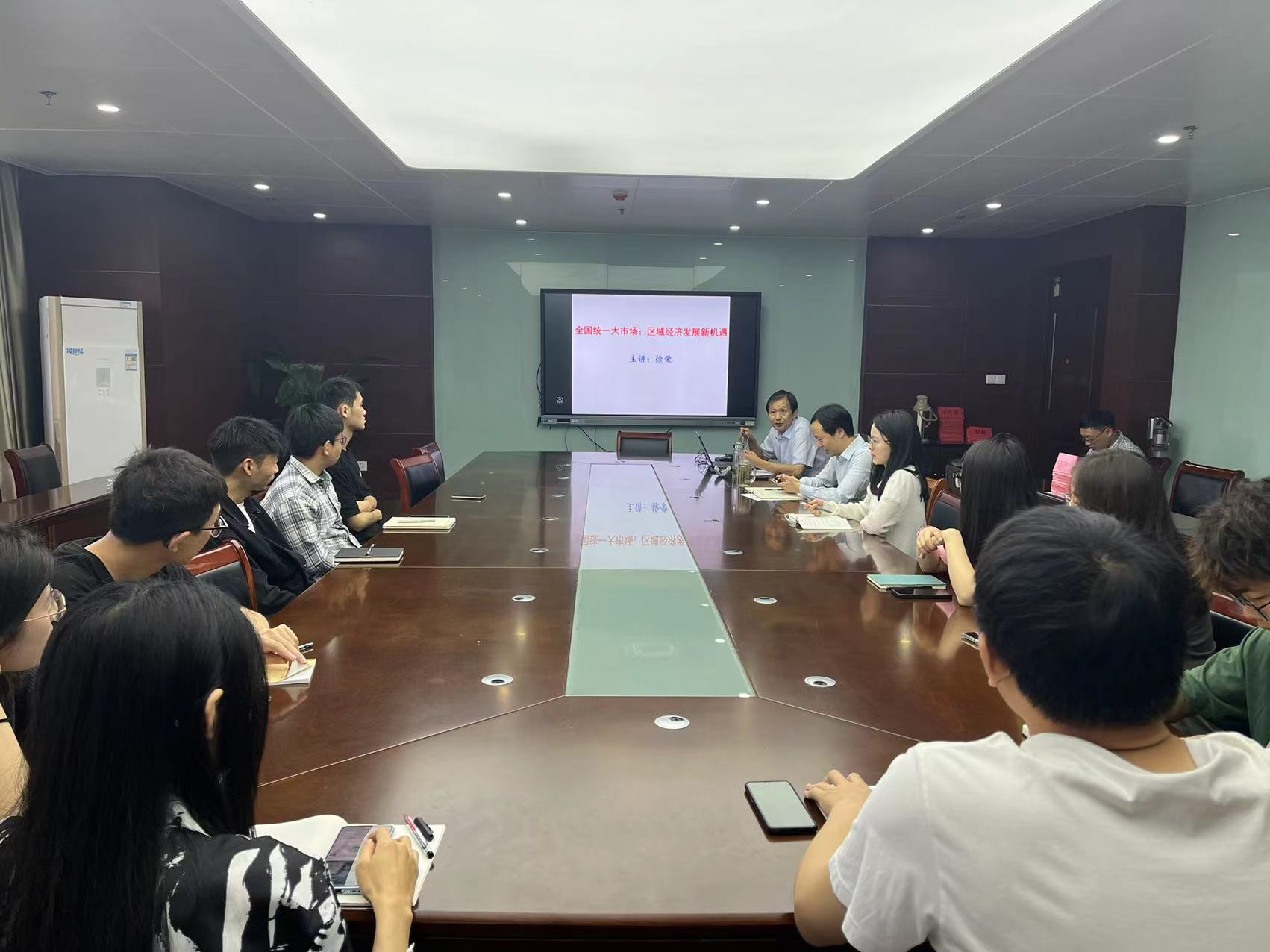 徐荣副教授以《全国统一大市场:区域经济发展新机遇》为题,介绍了当前的国际新形势及全国统一大市场的前世今生,并将美国、德国作为典型案例向大家生动阐述了全国统一大市场的国际经验;然后,立足要素流通、立体交通、新兴产业、生态环境四个角度提出了区域经济发展的新变化和新机遇;最后,为了进一步明晰全国统一大市场的建设路径,徐荣结合芜湖城市优势,提出了强化“大江”经济、加速口岸建设等具体实现方式。