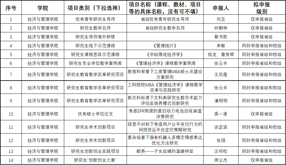 2023年度新时代育人质量工程项目(研究生教育) 经济与管理学院拟推荐立项结果公示