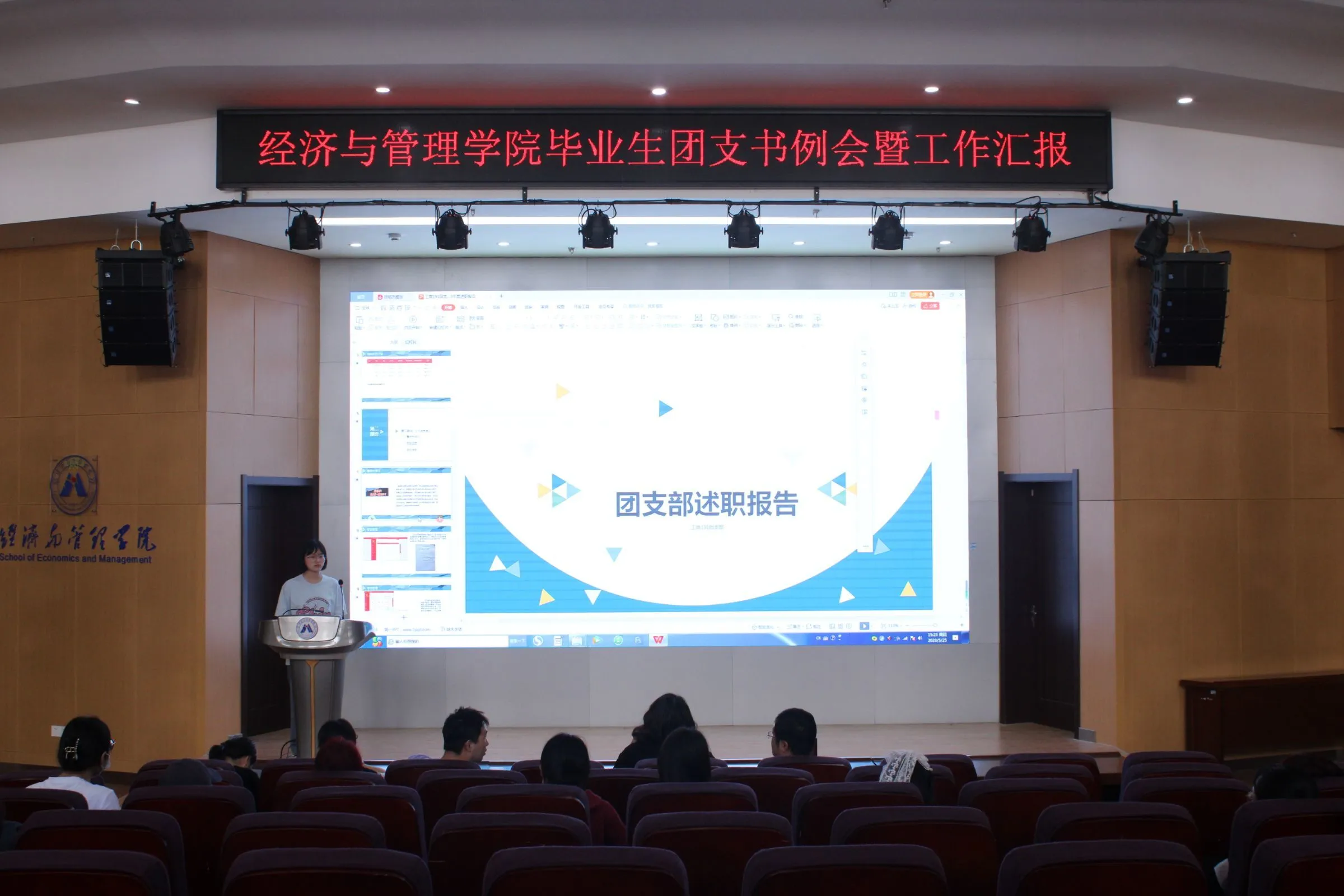 2019级工商管理、人力资源、市场营销、国际金融与贸易、物流管理、工业工程、质量管理专业以及管理研究生20级的团支书按照顺序依次上台汇报。各团支部主要围绕团支部组成、团支书工作成果展示、未来工作梳理、团支部工作不足与反思这几个方面展开,对大学四年团支部工作进行了全面的总结。汇报结束后,学院团委组织部负责人对团组织关系转接事务进行讲解,对毕业生团组织关系转出等工作向各位毕业班做出了明确要求。