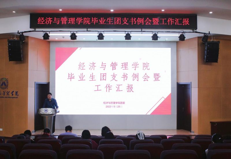 2023年5月25日下午,经济与管理学院在C座7楼报告厅召开2023届毕业班团支书工作会议。学院党委副书记刘海涛、团委书记、毕业班辅导员、毕业班团支书、副团支书等共同参加。本次会议由赵恒梅主持。