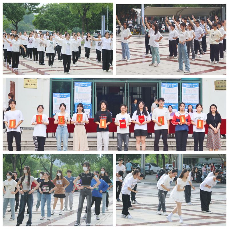 为深入贯彻落实“三全六专”育人工作要求,呼吁和鼓励同学们“壮”起来、“乐”起来、“和”起来,增强大学生的身体素质,聚焦培养大学生树立正确的生命观、体育观,经济与管理学院于5月31日下午在C座楼下广场举办“舞动青春,活力未来”跳操比赛决赛。本次比赛邀请到学生处学生管理科科长刘畅,校团委宣传科科长孙琳瑶担任评委,院党委副书记刘海涛,团委书记赵恒梅,辅导员张方、吴兆克、盛洁、徐博作为嘉宾出席了本次比赛。