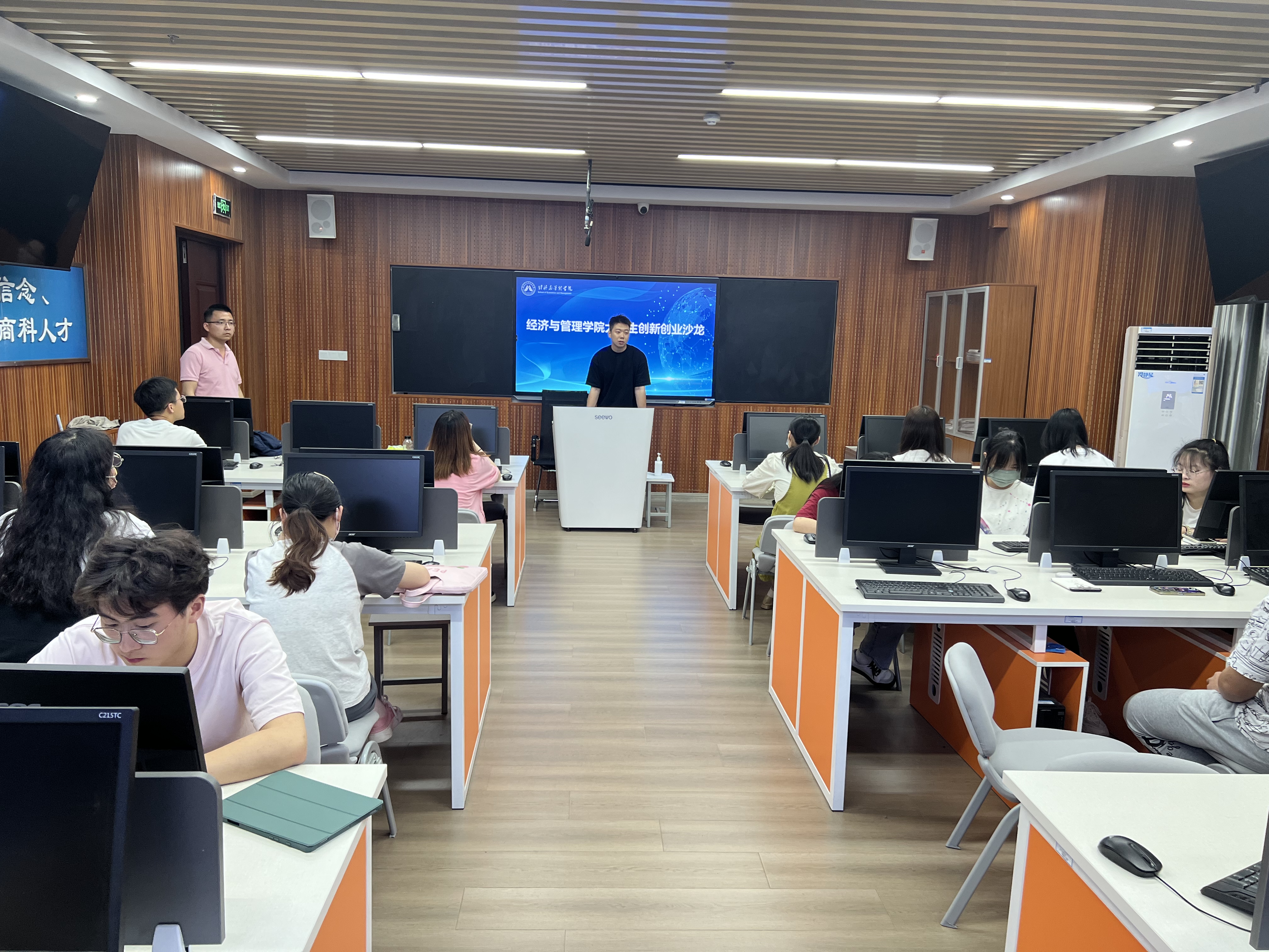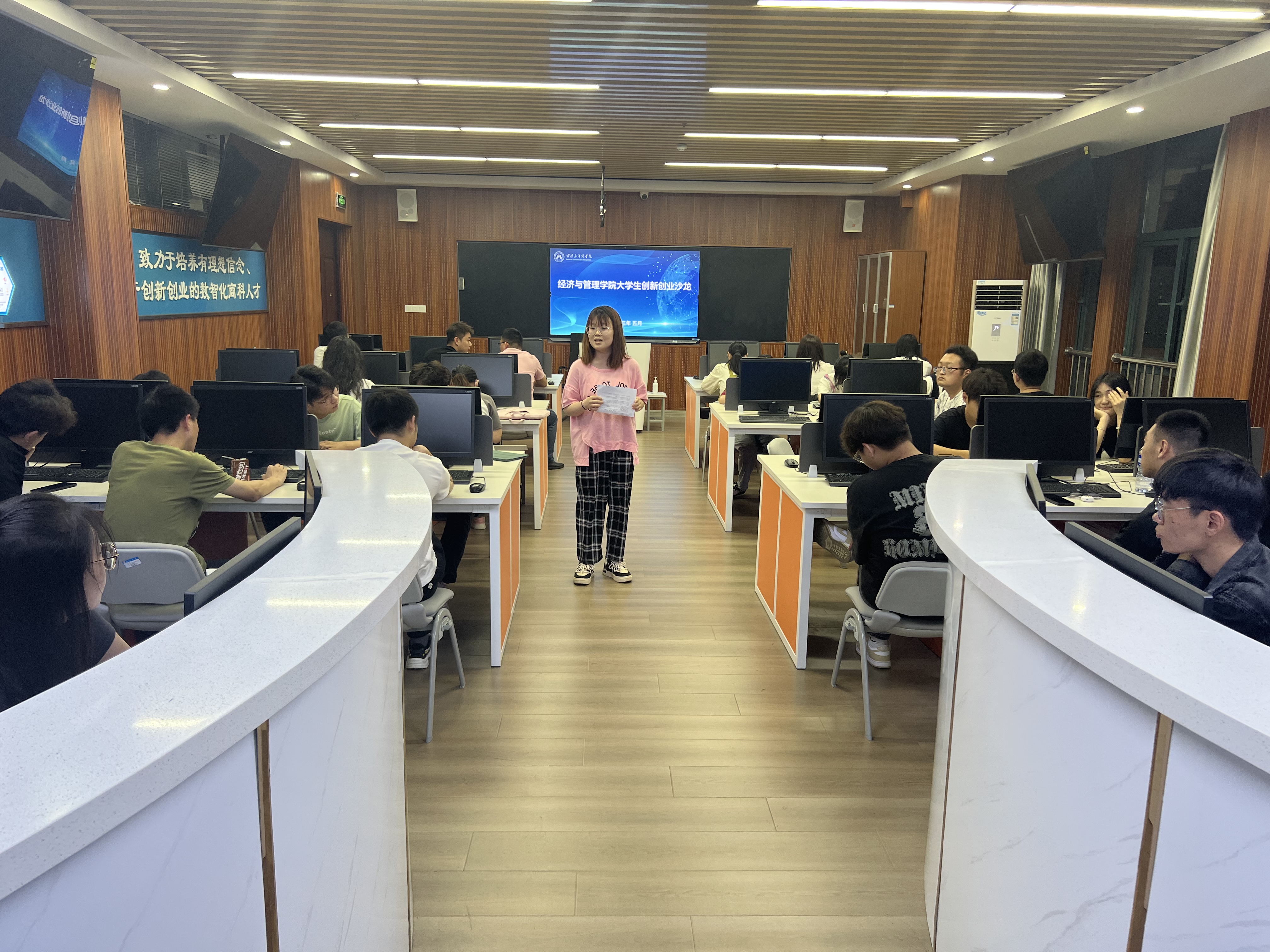 531日,第一期“大学生创新创业沙龙”活动在经管学院C922实验室举行。学院各专业学生代表参加活动。