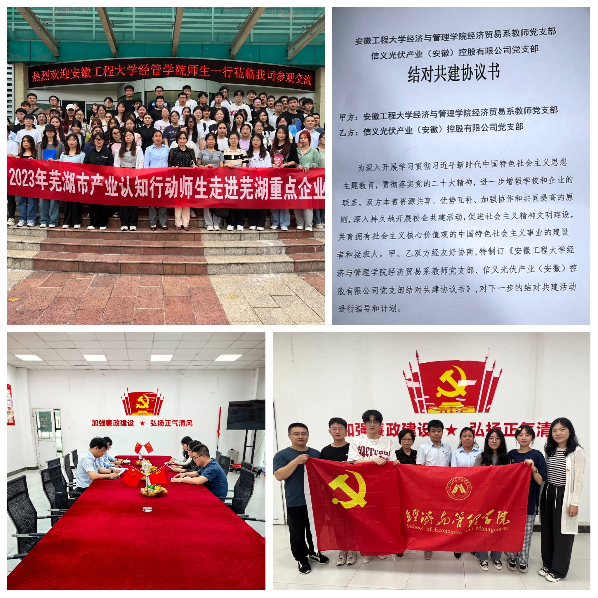 为深入学习贯彻习近平新时代中国特色社会主义思想主题教育,进一步落实新时代党建工作的新要求,拓展校企合作新思路、新模式。6月13日上午,经济与管理学院经贸系教师党支部走进我院实习共建基地、芜湖重点企业——信义光伏产业(安徽)控股有限公司,开展主题教育和党建结对共建活动。