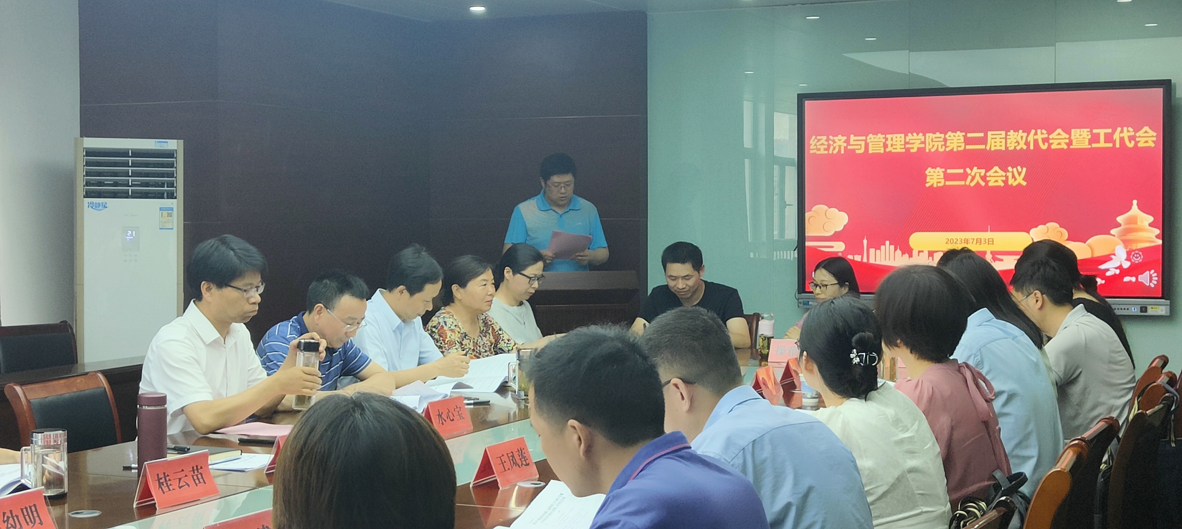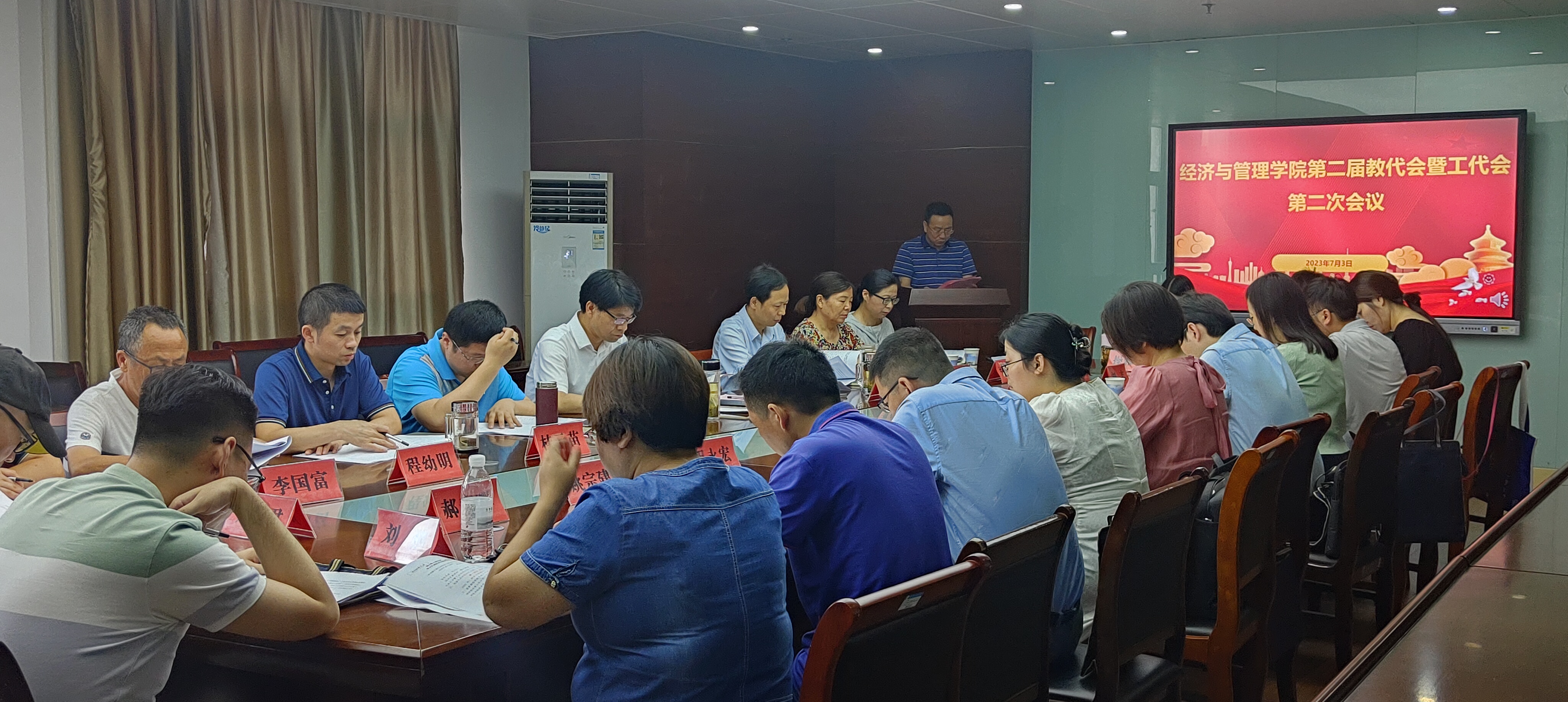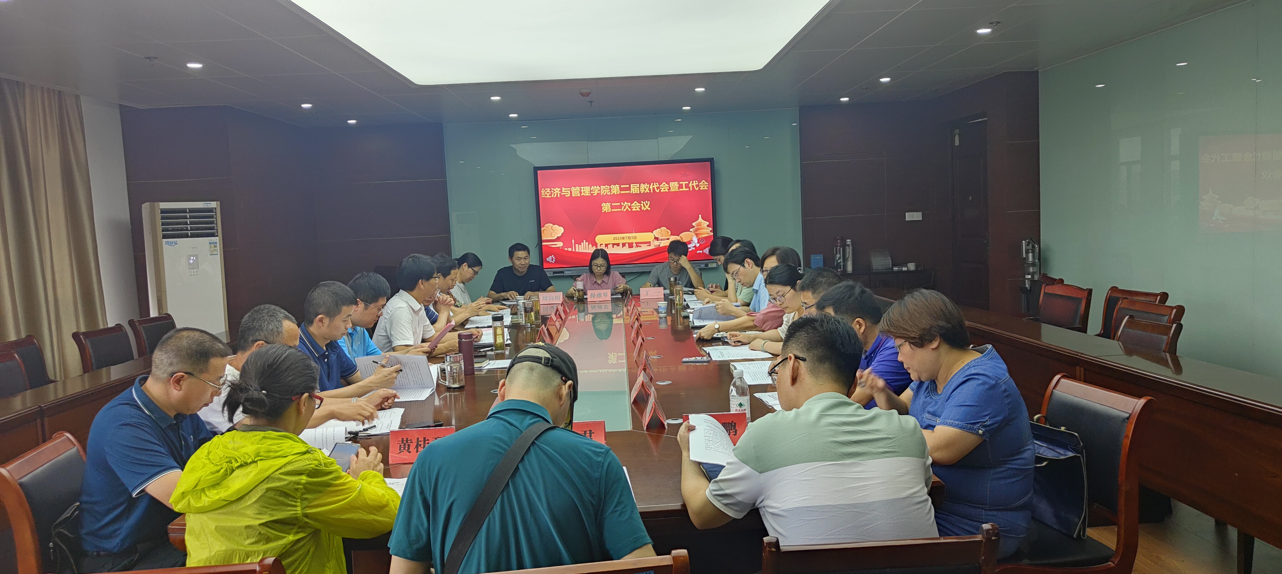 7月3日下午,经济与管理学院第二届教职工代表大会暨工会会员代表大会第二次会议在学院C818会议室胜利召开,学院第二届教代会和工代会代表参加会议。