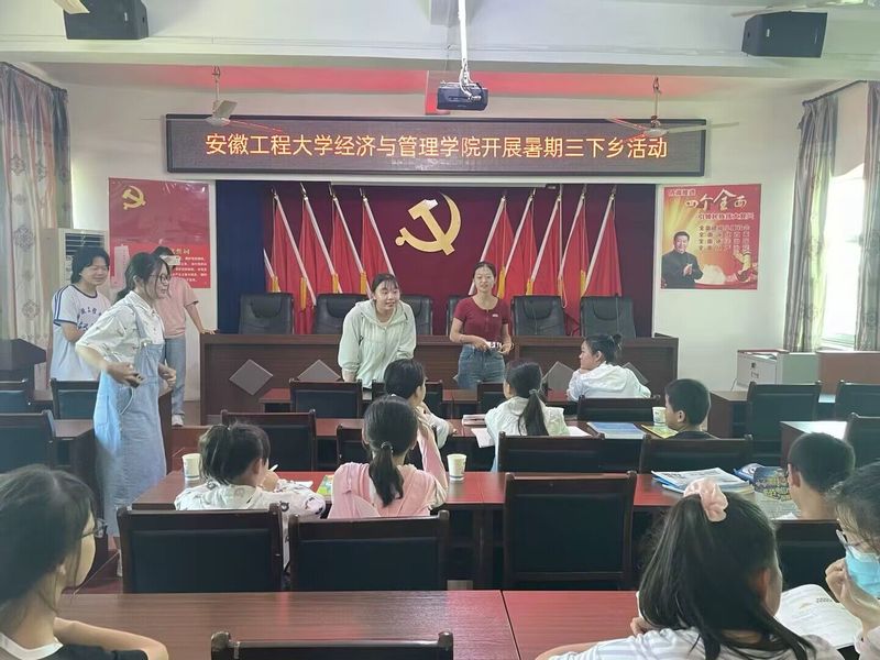 由于父母外出务工,农村留守儿童人群数量不断增加,留守儿童的各类心理问题、生活和学习问题所产生的危害对他们的成长不利,同时随着暑假到来,留守儿童的居家安全教育和户外安全教育极为重要。为帮助当地的留守儿童安全快乐的度过暑假生活。团队成员来到了新河村服务中心,成为一天“小老师”。首先开展心理健康活动,成员们为小朋友们发一张彩纸,让他们写下近期学习或生活的烦恼,交由信任的小老师解答疑惑,实践队成员们针对普遍问题结合自己亲身经历和经验对他们进行集中交流,解答生活和学习困难,对于特殊性问题一对一沟通解答,引导小朋友们养成积极、乐观向上的生活态度。