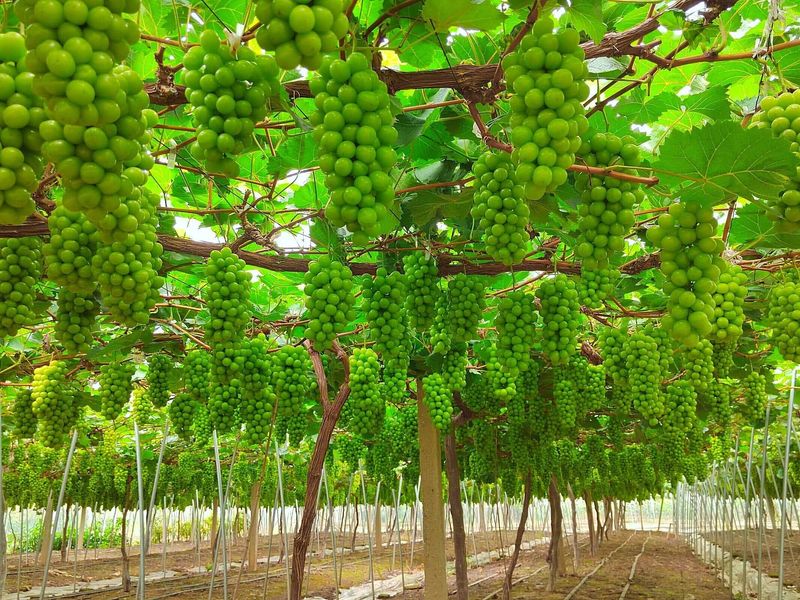 7月7日上午实践团队走进葡萄园的大棚内,迎面一股暖气混合瓜果成熟的甜蜜气息扑面而来。放眼望去,一排排葡萄树整齐划一,一串串葡萄垂挂枝头,晶莹剔透,色泽诱人,一派丰收景象。种植户杜世海夫妇和工人们正忙着检查葡萄的成熟情况,为七月中旬采摘活动做充足准备。