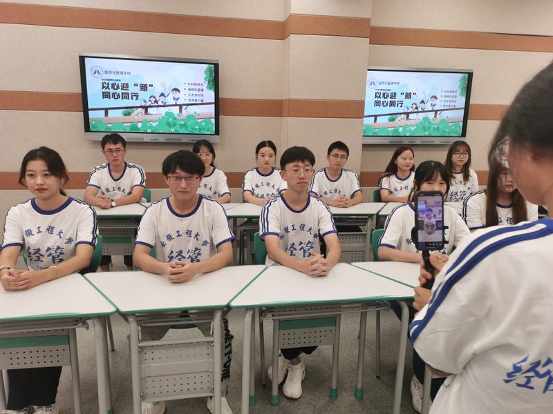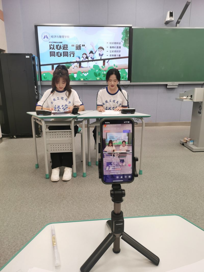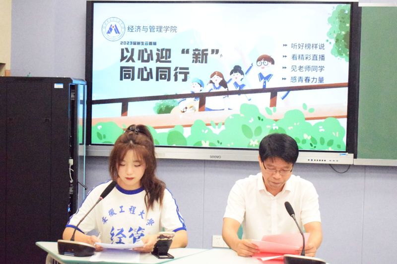 秋风轻拂,扬帆起航。为做好新生入学工作,帮助2023级新生更好更快地熟悉报道流程、了解大学生活、适应大学环境和解决相关疑惑,9月6日晚7点,经济与管理学院2023级新生云直播活动准时开始。院党委书记水心宝、党委副书记刘海涛、团委书记、2023级新生辅导员、全体新生学长导员、学生代表等30余人共同参加。直播由物流221程畅主持。