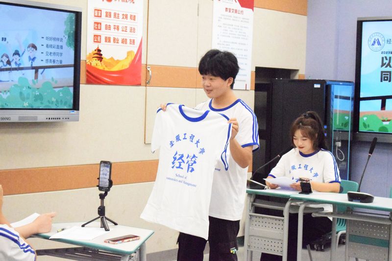 营销221班班长方杰分享自己的大学生活和感悟。他认为,同学们在大一期间要多多参加各类比赛、学院活动丰富自己的课余生活,扩大自己的有效社交范围,奋斗没有终点,任何时候都可以是起点。主席团成员方婧对2023届新生提出了要保持好奇心、注重时间管理分配、积极参加学院活动、注重自身健康和心理健康,珍惜各种机会,在不断学习中增强自身底气。